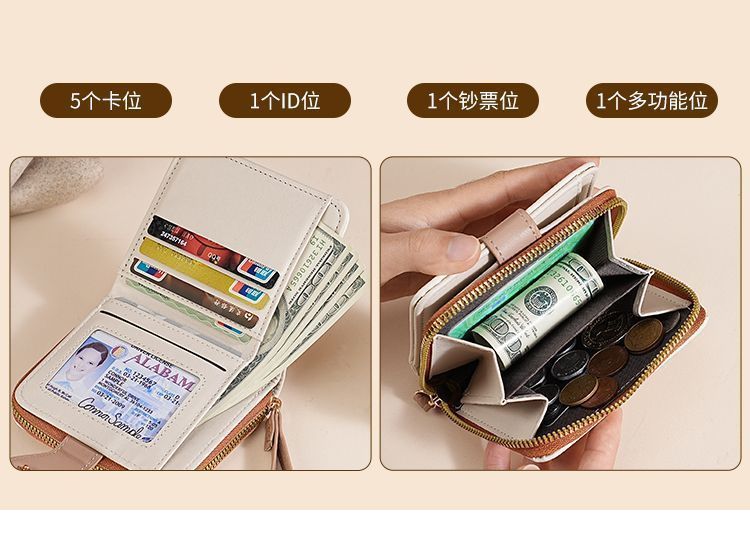 TJ2138# 2025新款钱包女士短款拉链迷你皮夹网红学生零钱包多卡位一体卡包