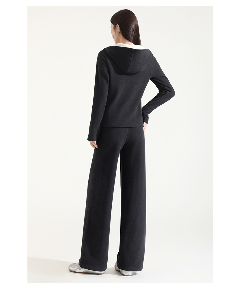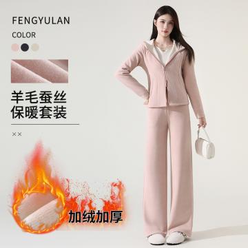 FA50716# 运动卫衣套装女装冬季长袖加绒加厚连帽两件套批发