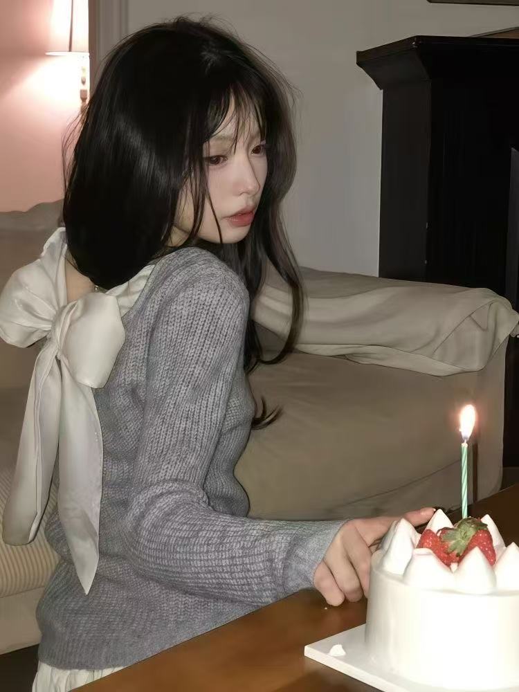 FA54280# 韩系穿搭!!蝴蝶结毛衣针织衫秋冬灰色慵懒温柔纯欲显瘦上衣潮 服裝批發女裝批發服飾貨源