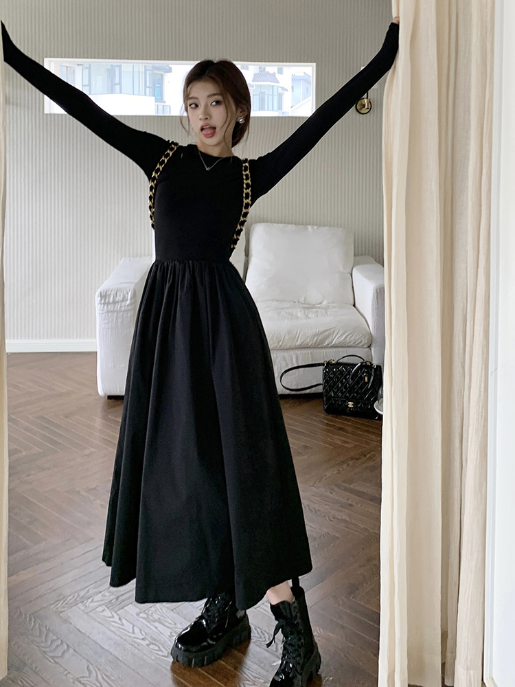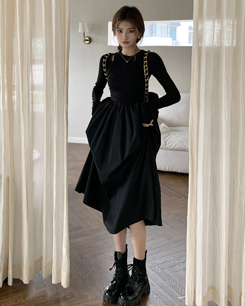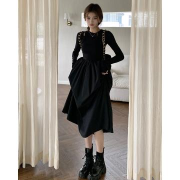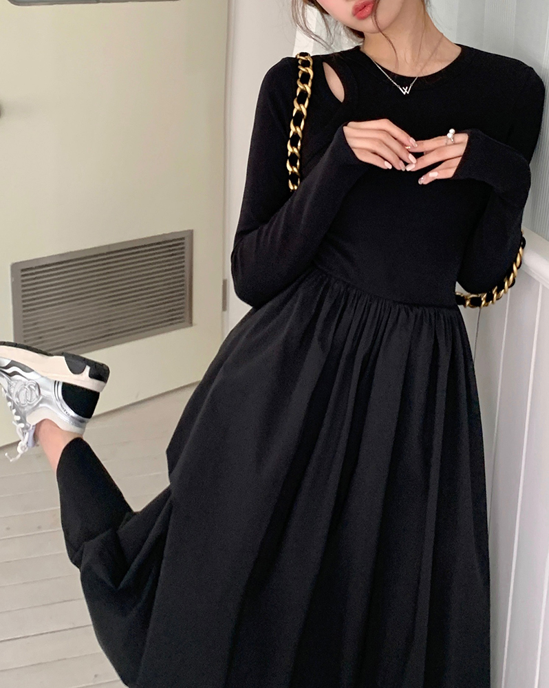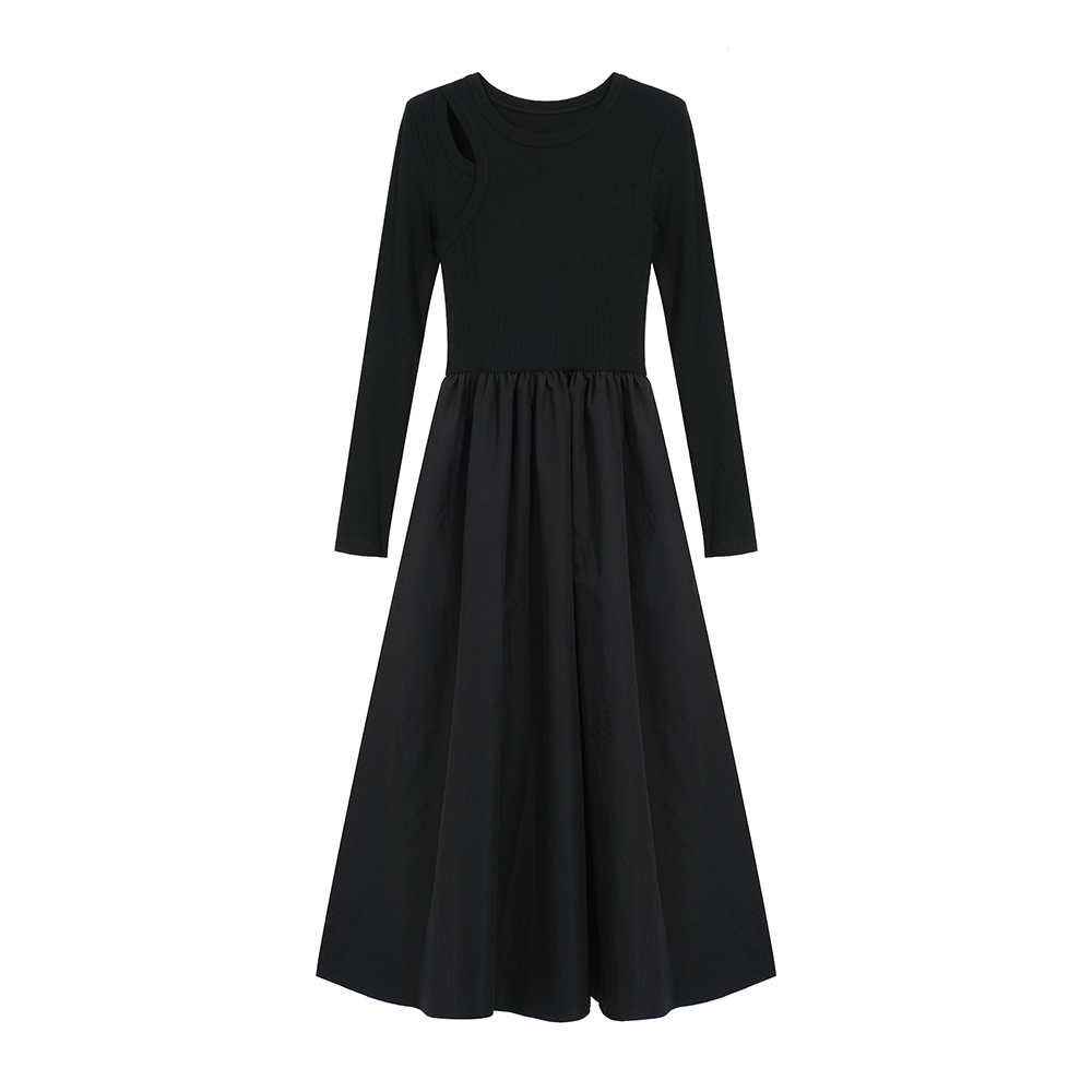 FA55022# 春装新款设计感镂空针织长袖连衣裙女气质修身显瘦长裙 服裝批發女裝批發服飾貨源