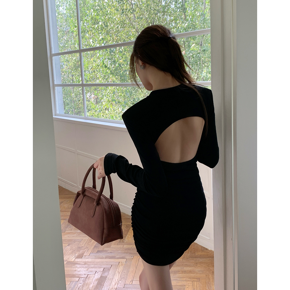 FA55024# 春装新款性感辣露背连衣裙女纯欲紧身包臀打底短裙有胸垫 服裝批發女裝批發服飾貨源