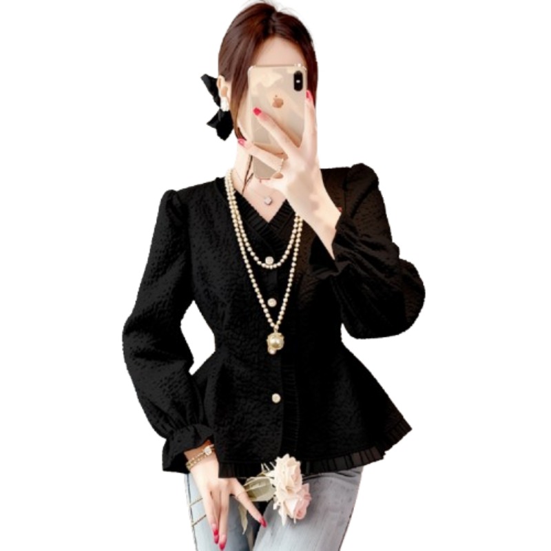 FA55075# 跨境专供东南亚爆款设计感时尚洋气收腰衬衫长袖休闲显瘦遮肉上衣 服裝批發女裝批發服飾貨源