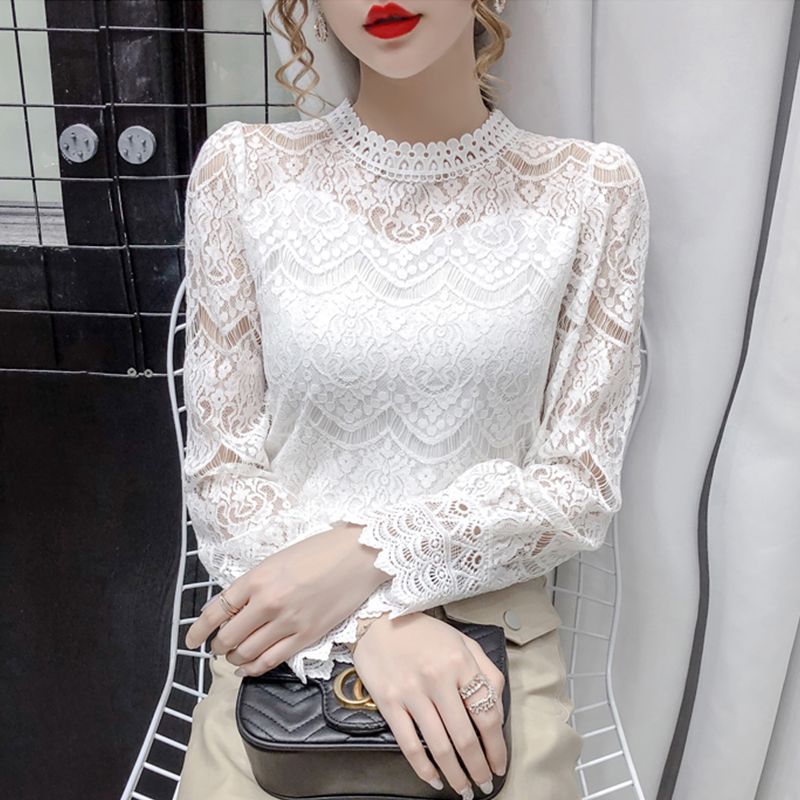FA55084# 欧货蕾丝打底衫女春秋装新款韩版内搭网纱上衣洋气 服裝批發女裝批發服飾貨源
