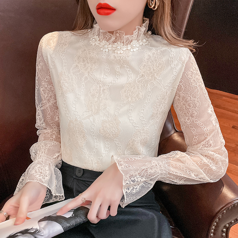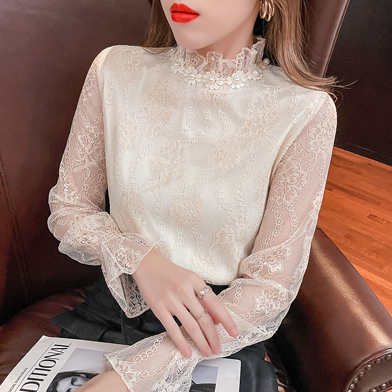 FA55085# 春秋季新款韩版时尚欧货蕾丝打底衫洋气雪纺小衫女 服裝批發女裝批發服飾貨源