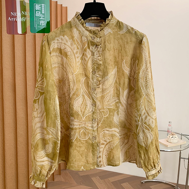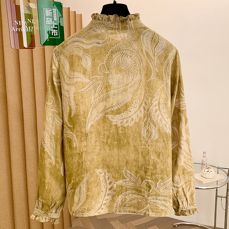 FA55108# 原创设计宽松文艺优雅苎麻衬衫春季新款开衫长袖上衣 服裝批發女裝批發服飾貨源