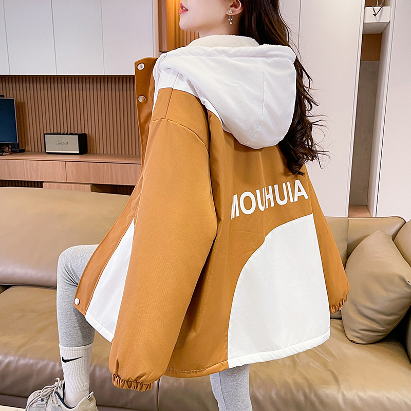 FA55516# 羊羔毛加厚外套女秋冬新款初中高中学生宽松设计感加绒棉服潮 服裝批發女裝批發服飾貨源