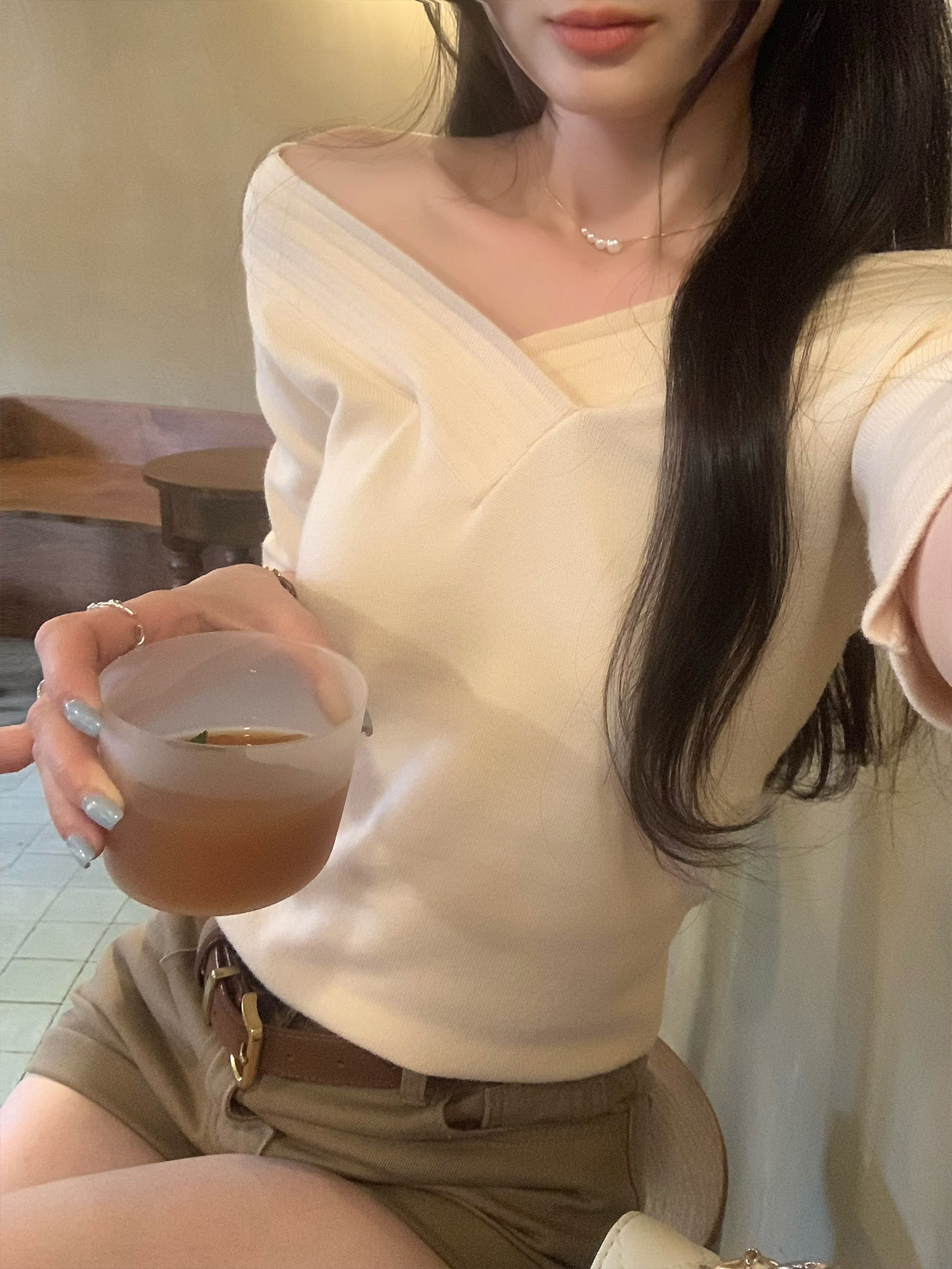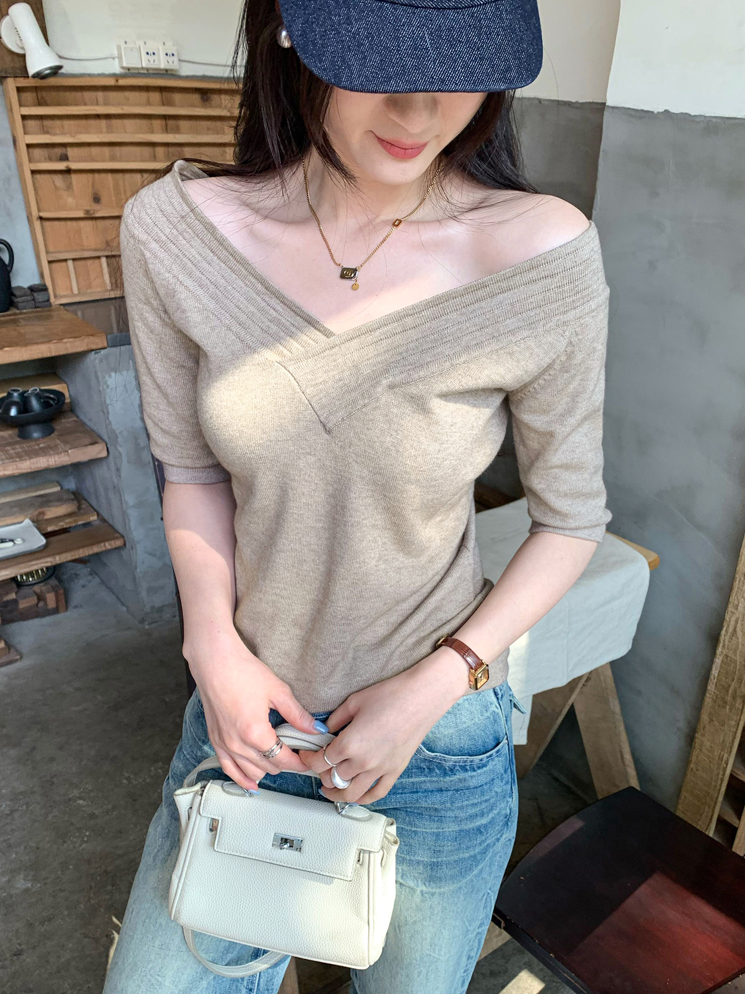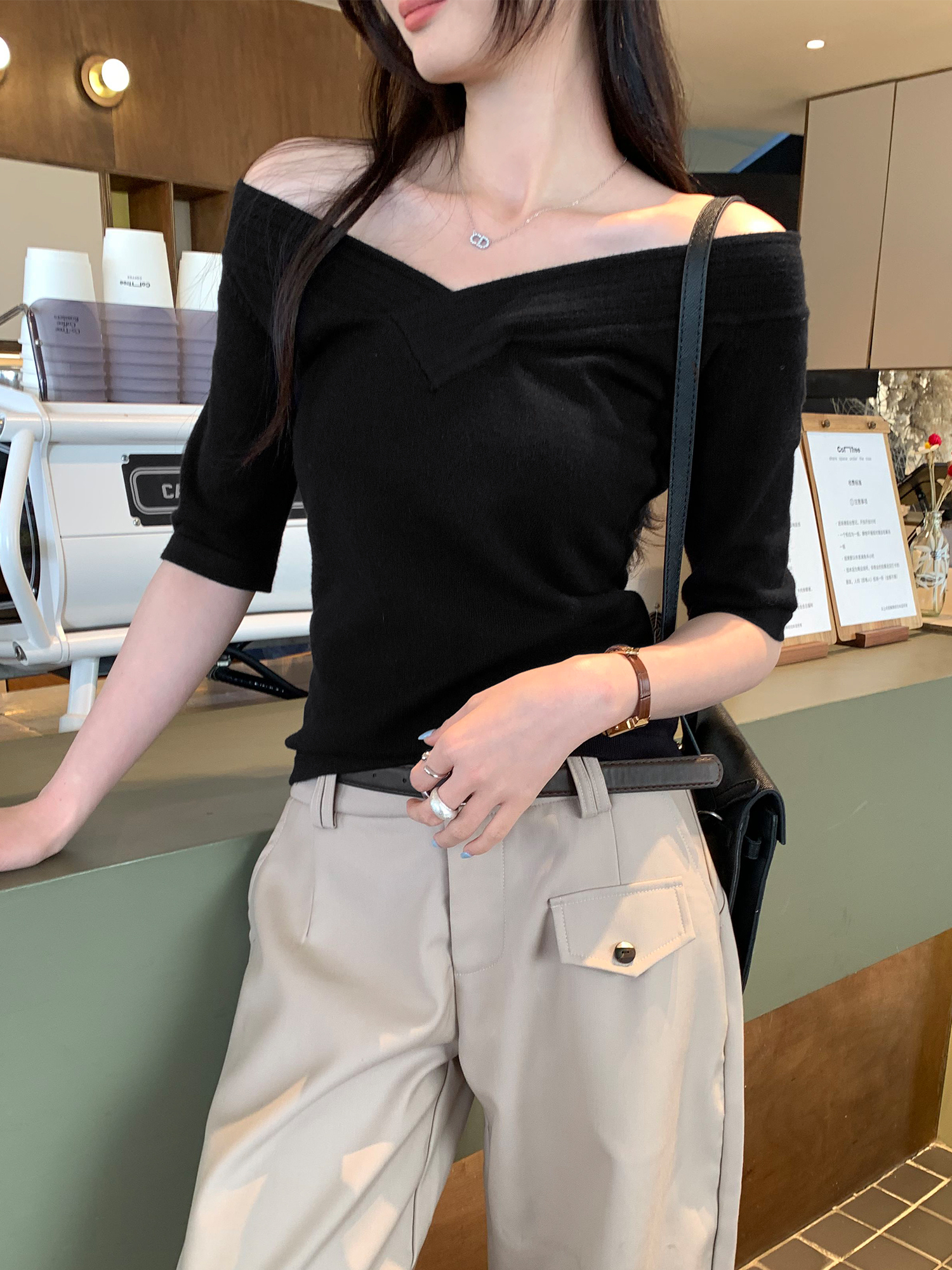BY10280# 超好看两穿V领内搭打底短袖T恤女夏季新款设计感短上衣 服裝批發女裝批發服飾貨源