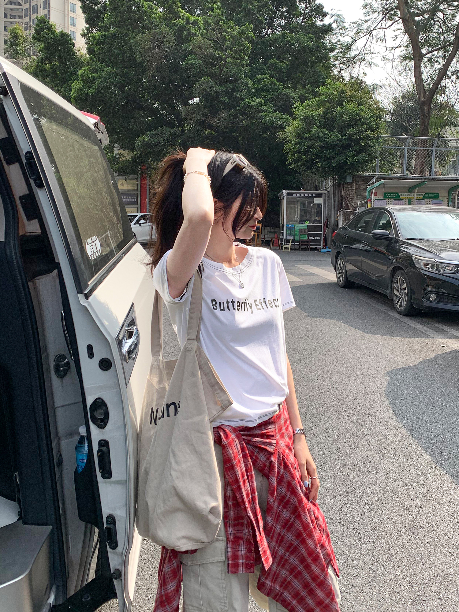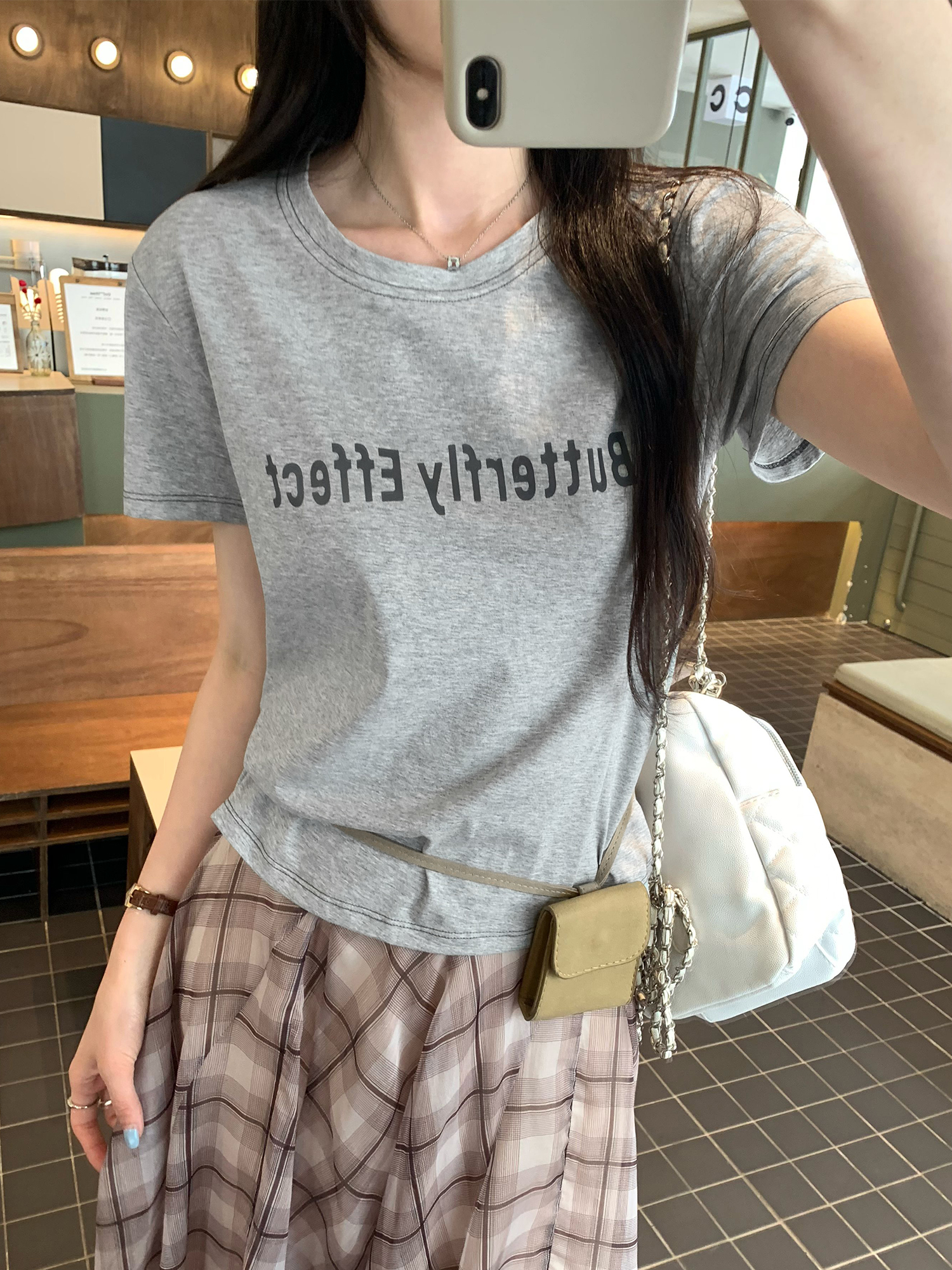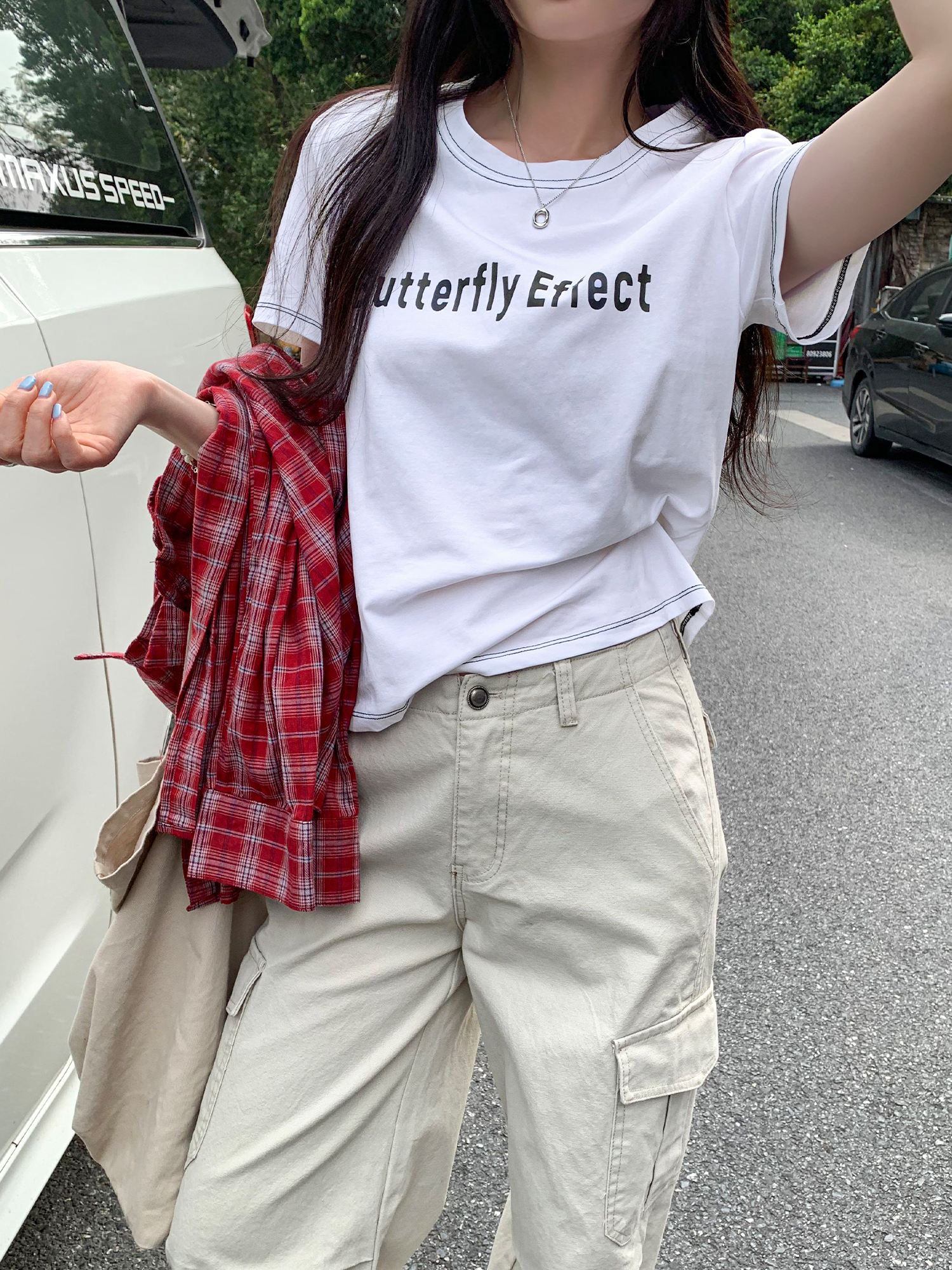 BY10285# 爆款夏字母印花宽松短袖T恤女新款高级感百搭显瘦上衣 服裝批發女裝批發服飾貨源
