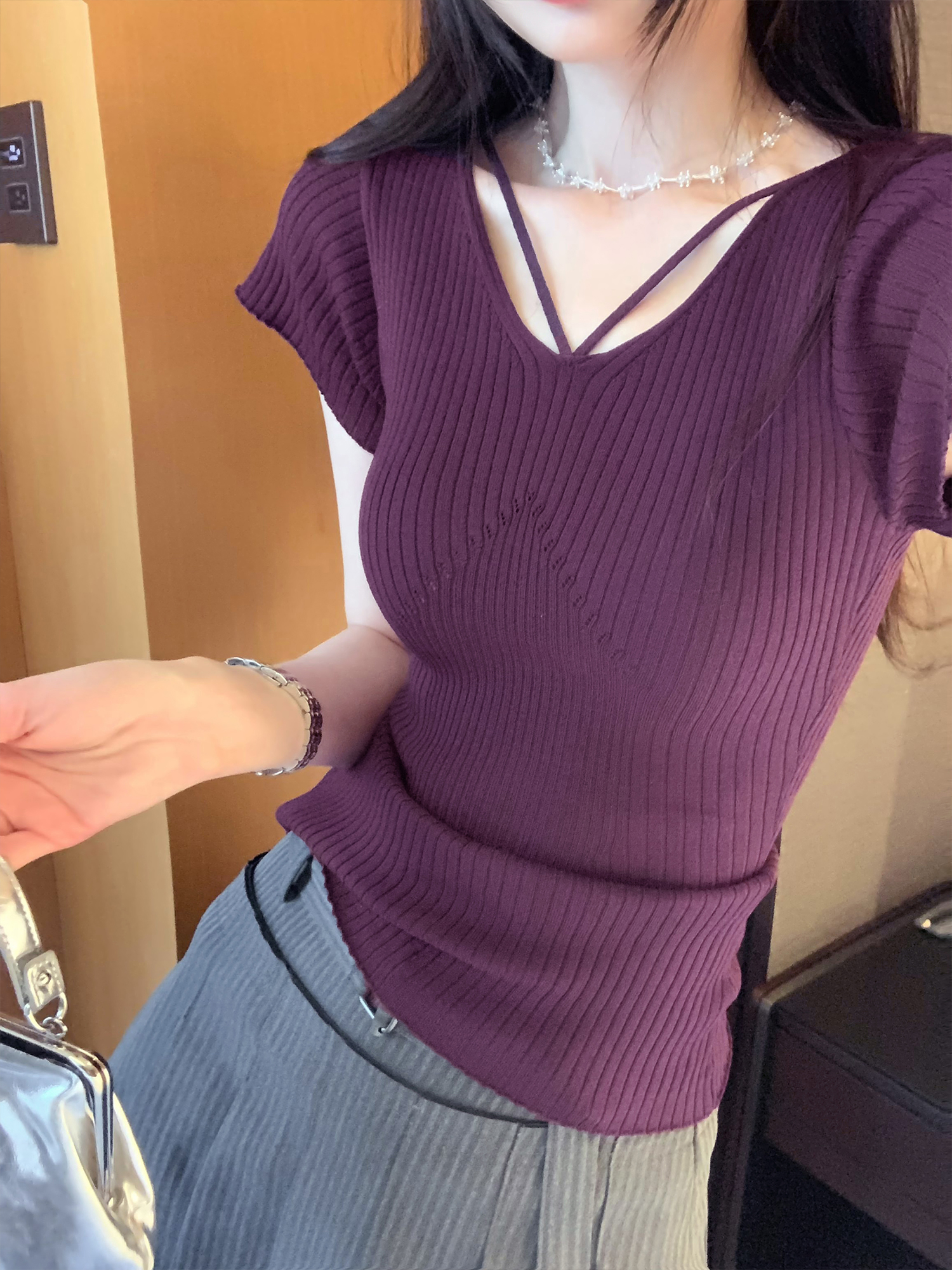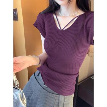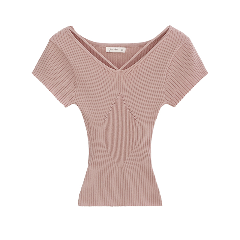 BY10303# 辣妹性感御姐V领修身紧身短袖针织衫女夏季新款小上衣 服裝批發女裝批發服飾貨源