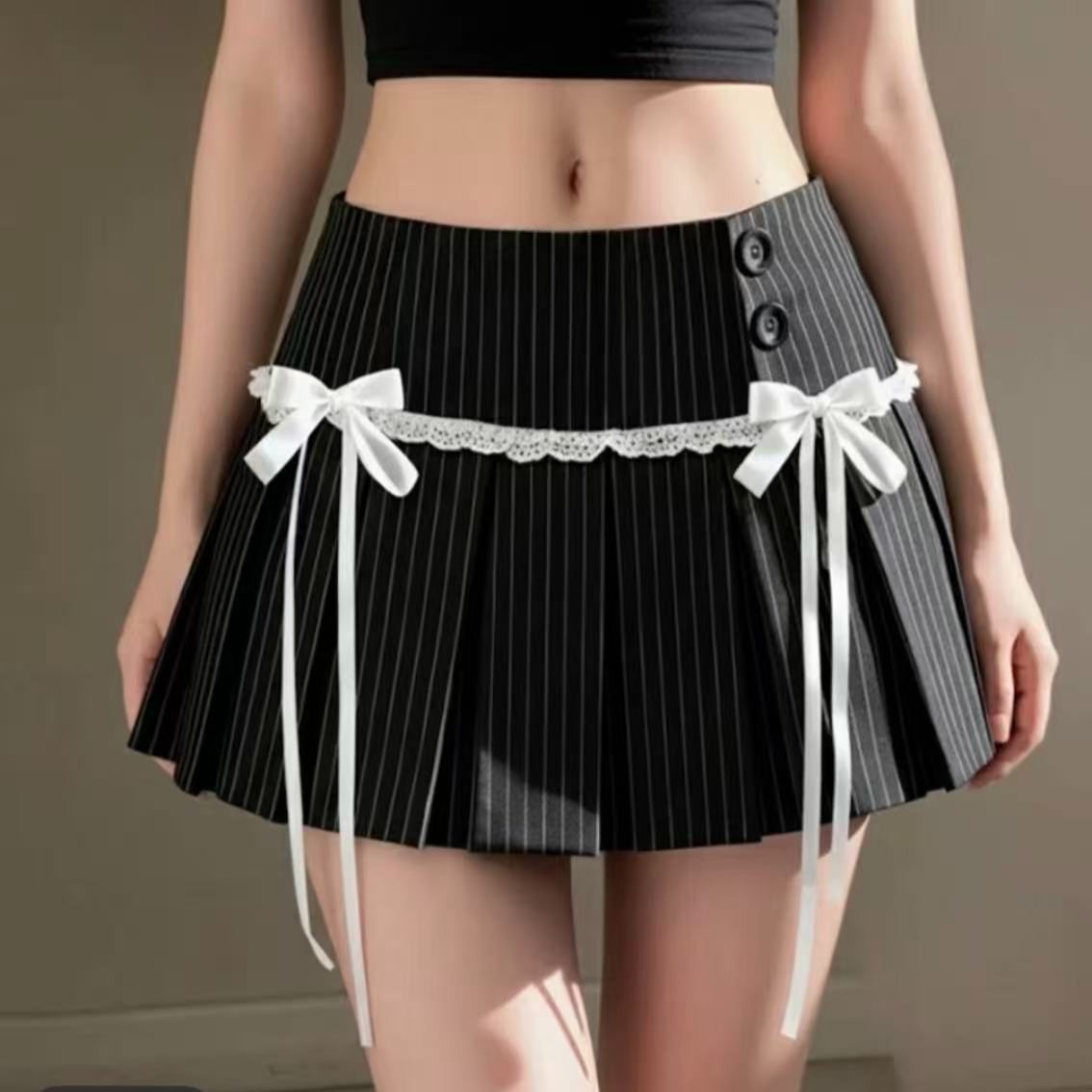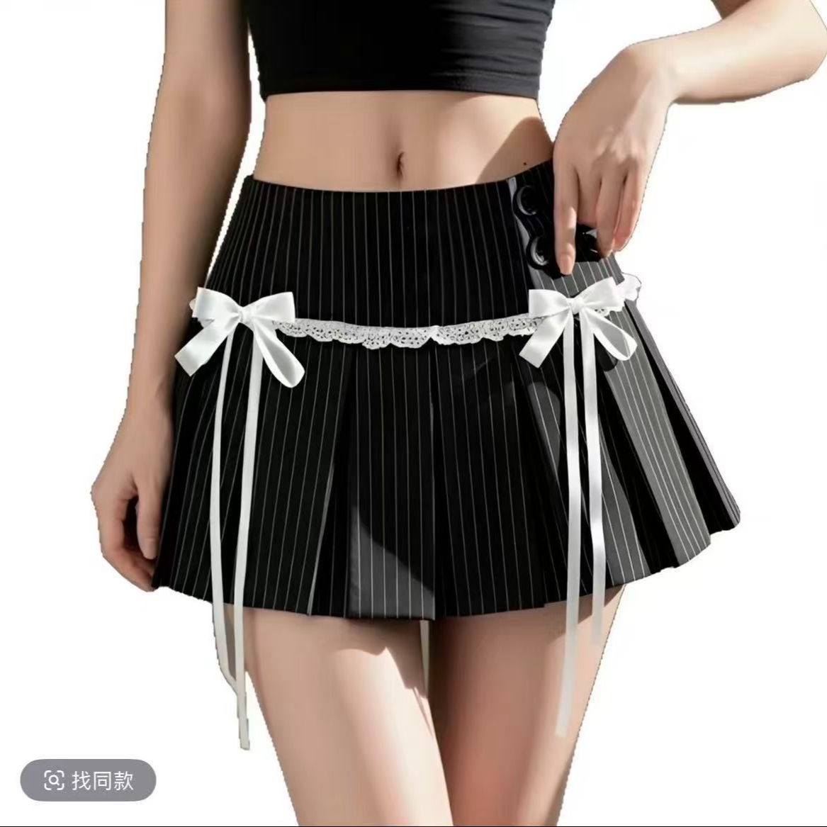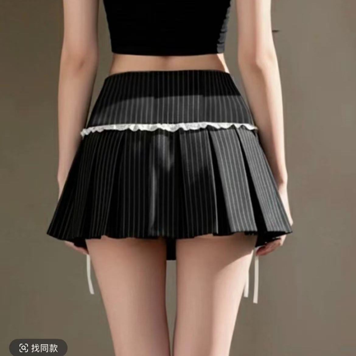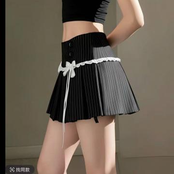 BY10373# 休闲辣妹条纹西装百褶裙女春秋复古性感低腰显瘦半身迷你短裙 服裝批發女裝批發服飾貨源