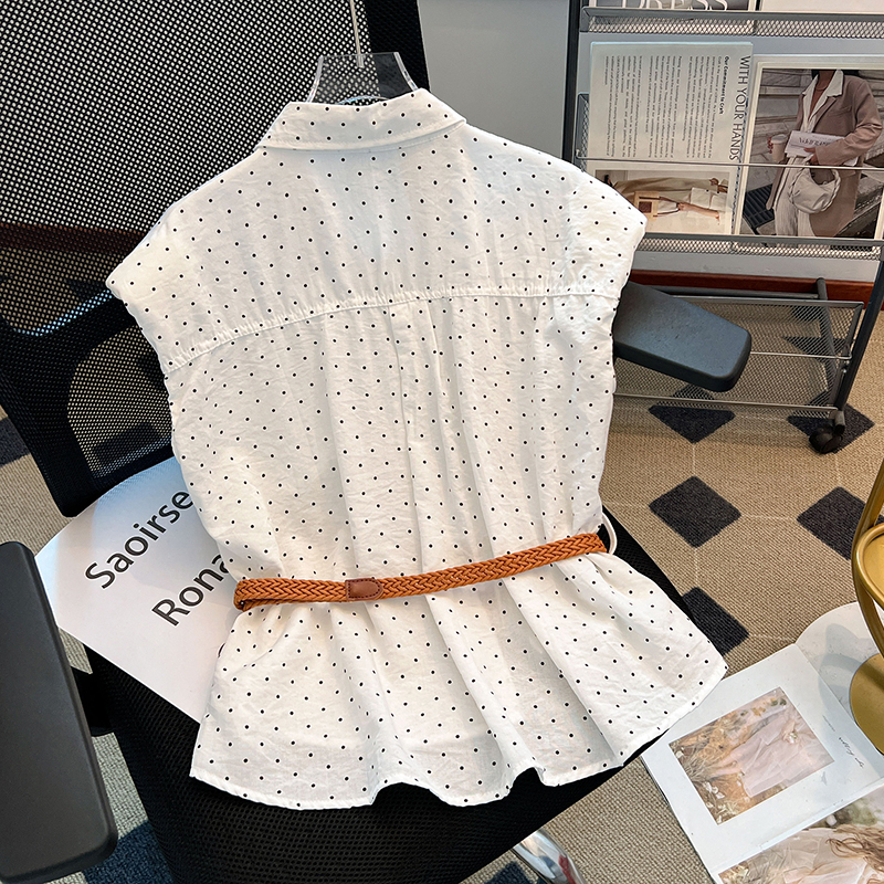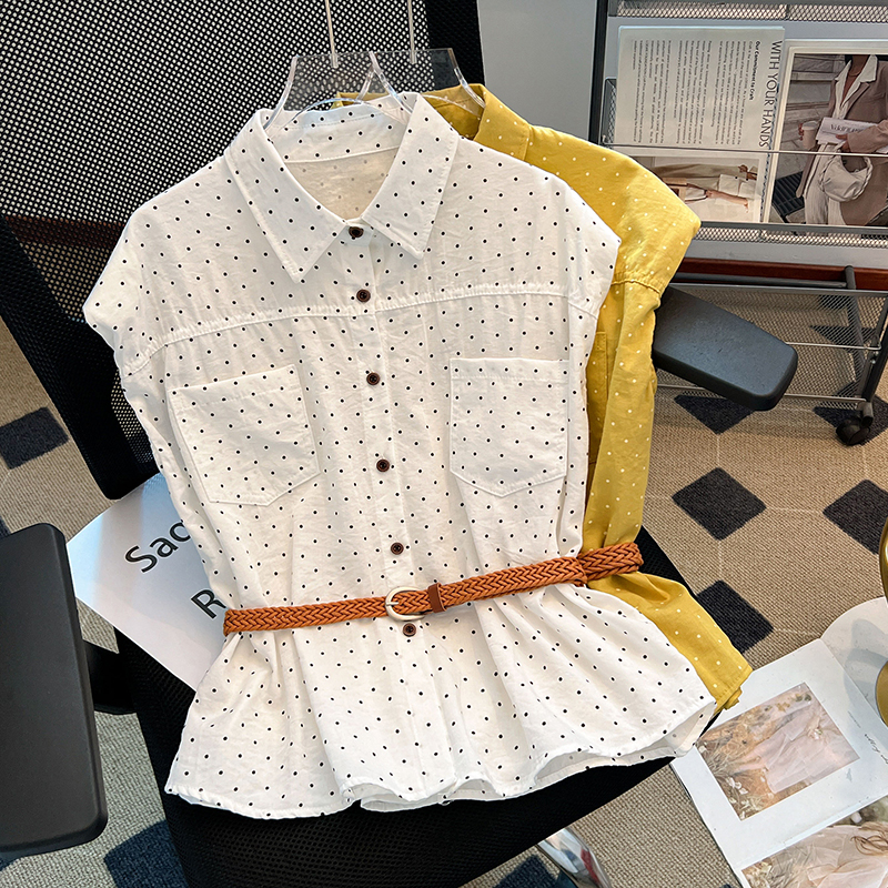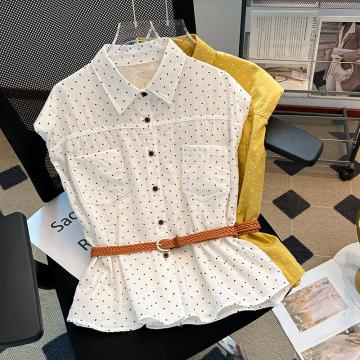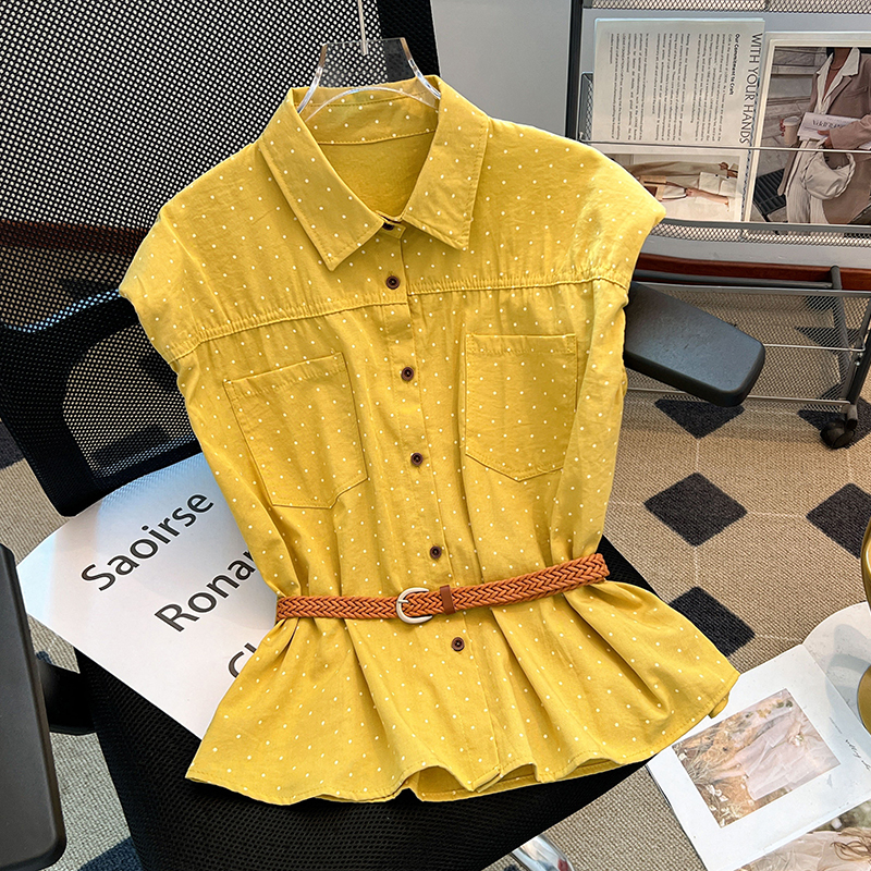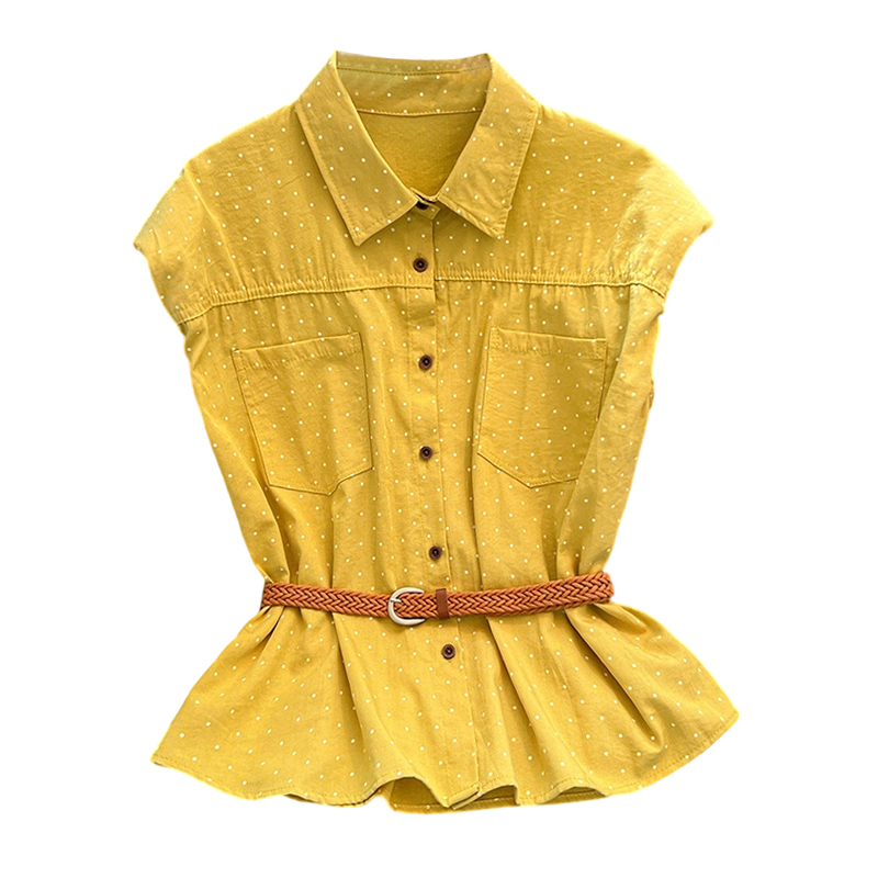 首页 > 短袖雪纺衫、衬衫、上衣 > BY10402# 黄色波点Polo领坎肩衬衫女夏款垫肩设计感小飞袖上衣 服裝批發女裝批發服飾貨源