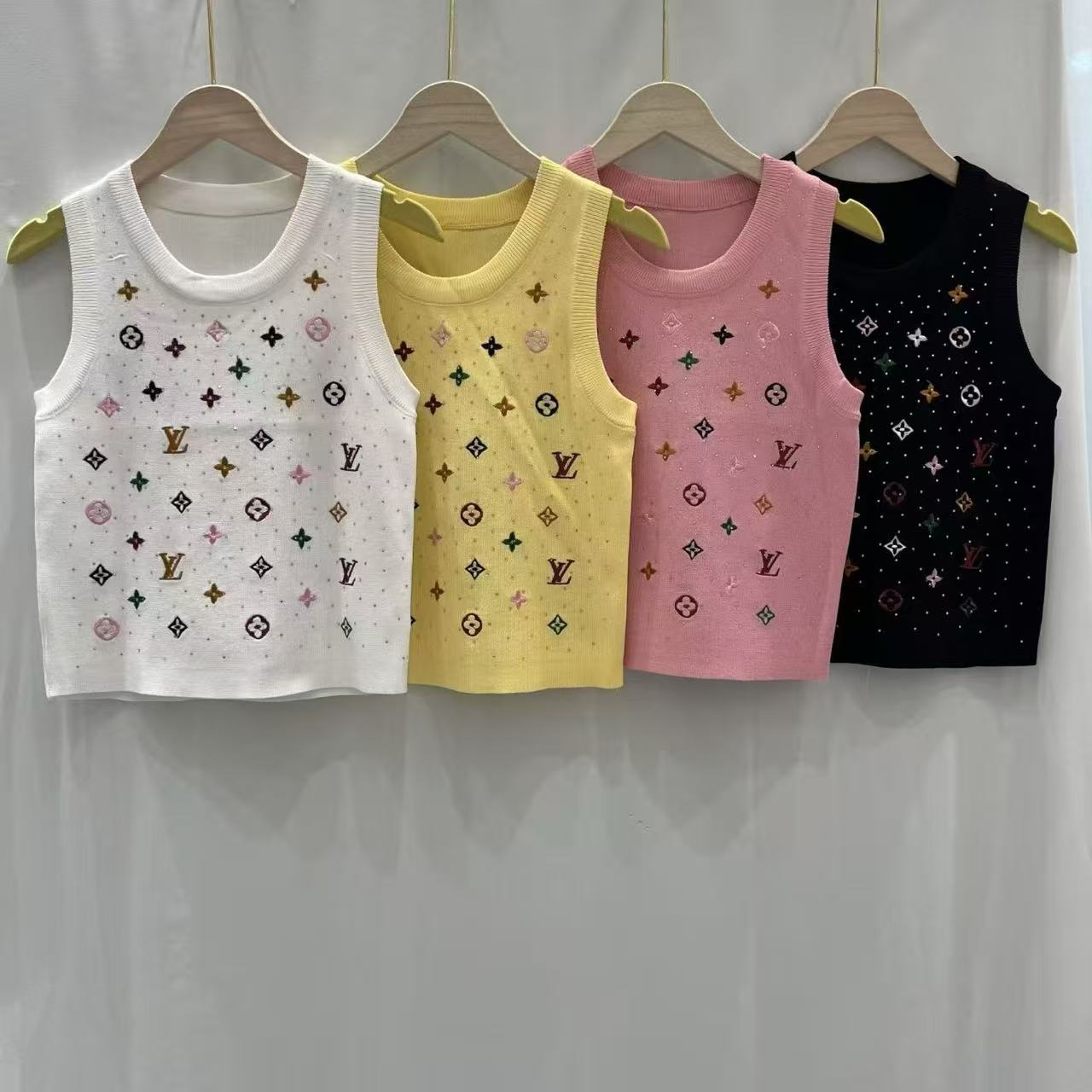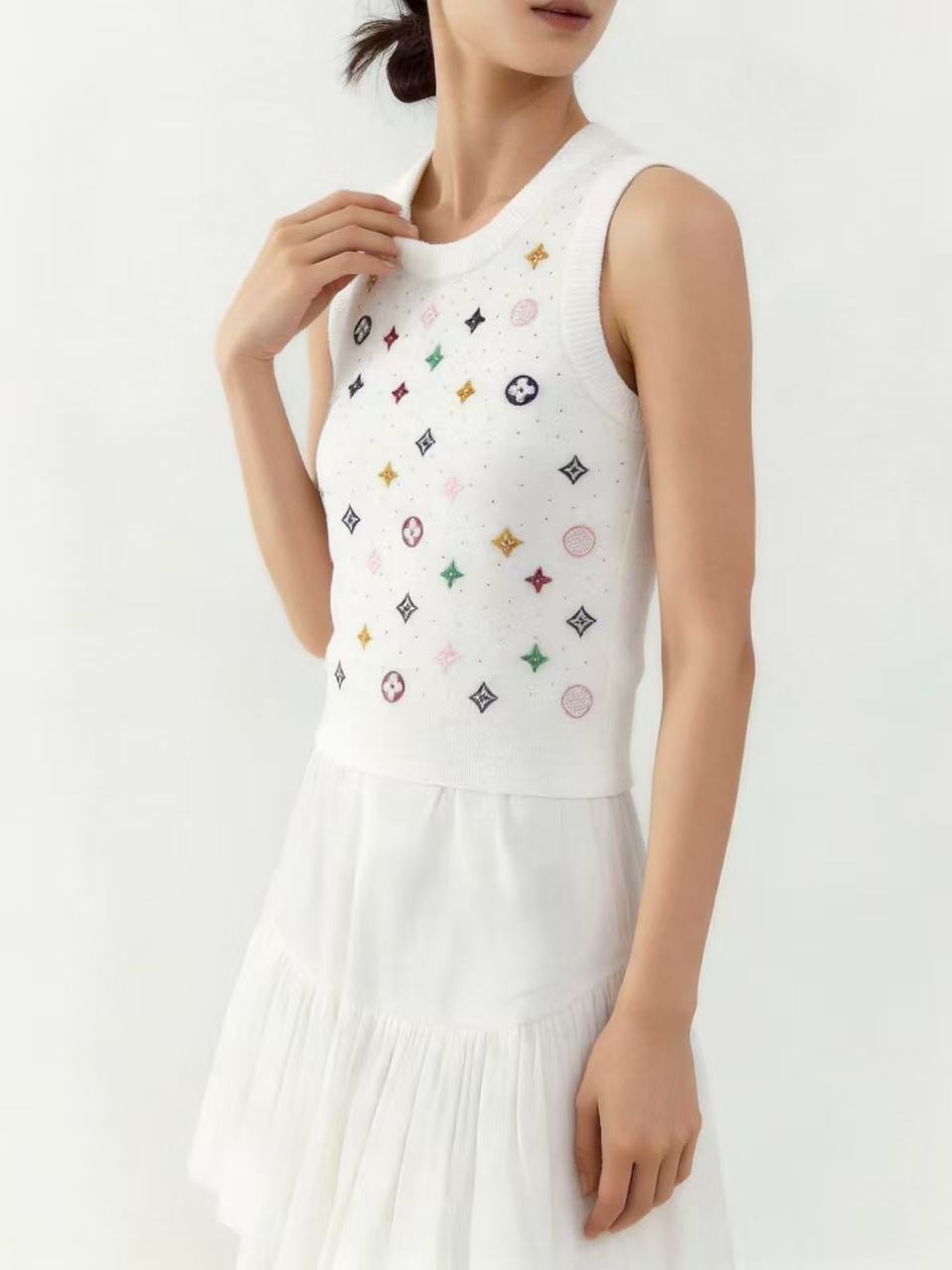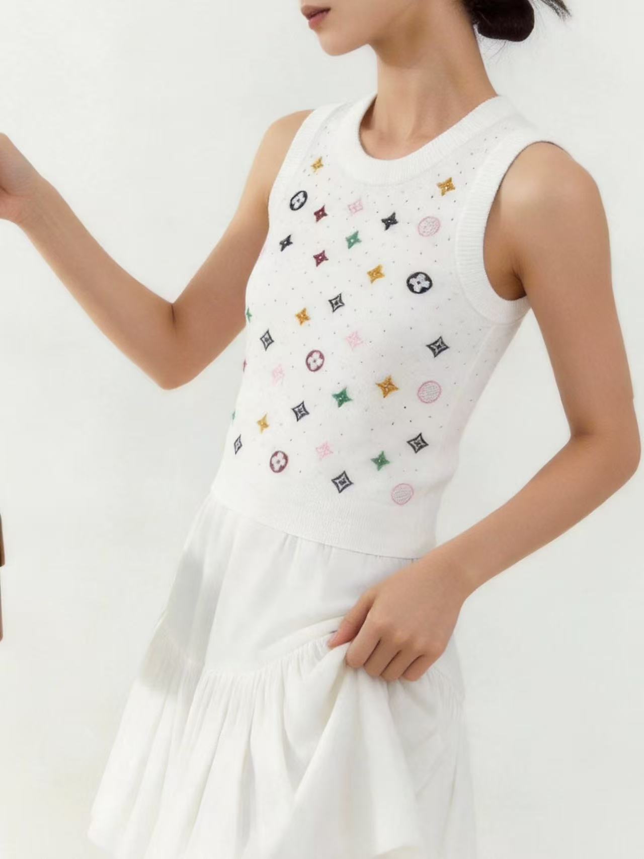BY10421# 重工刺绣蝴蝶白色针织背心大码女装春季无袖修身百搭短上衣 服裝批發女裝批發服飾貨源