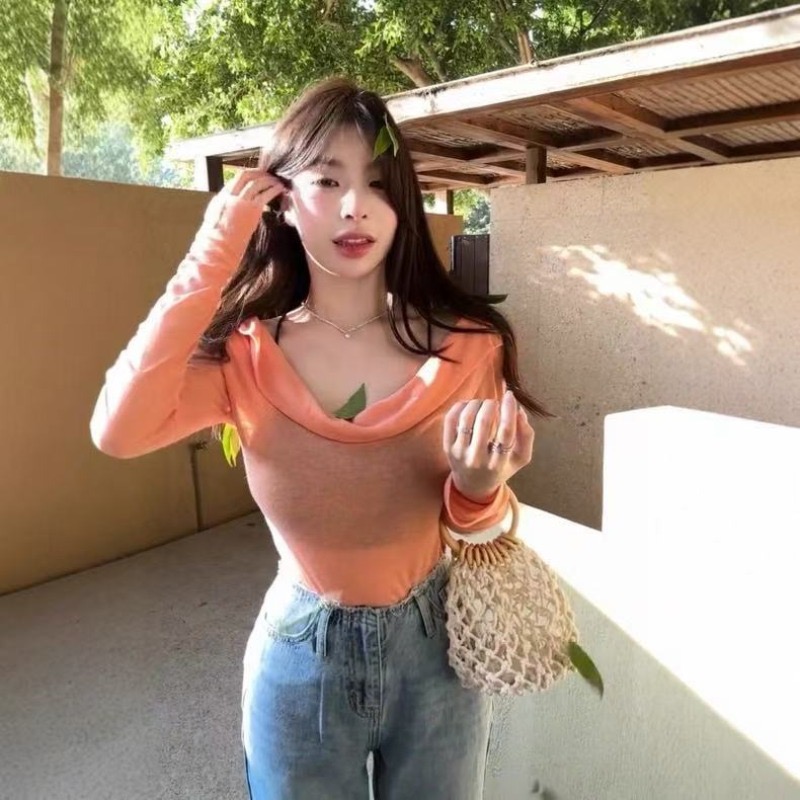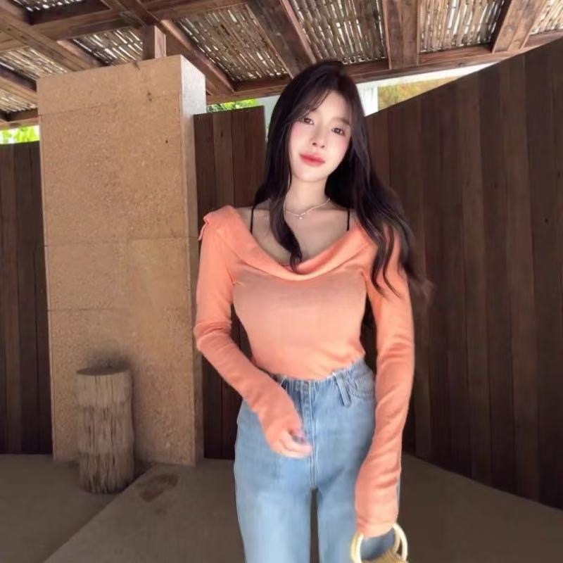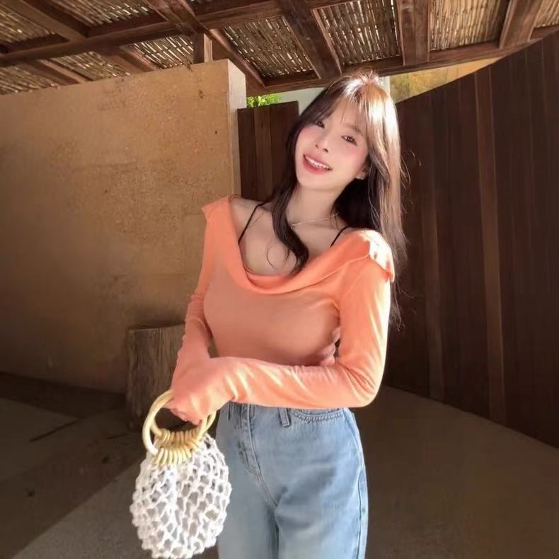 BY10492# 韩系荡领一字肩长袖T恤女春季新款纯欲风巨好看绝美显瘦上衣 服裝批發女裝批發服飾貨源
