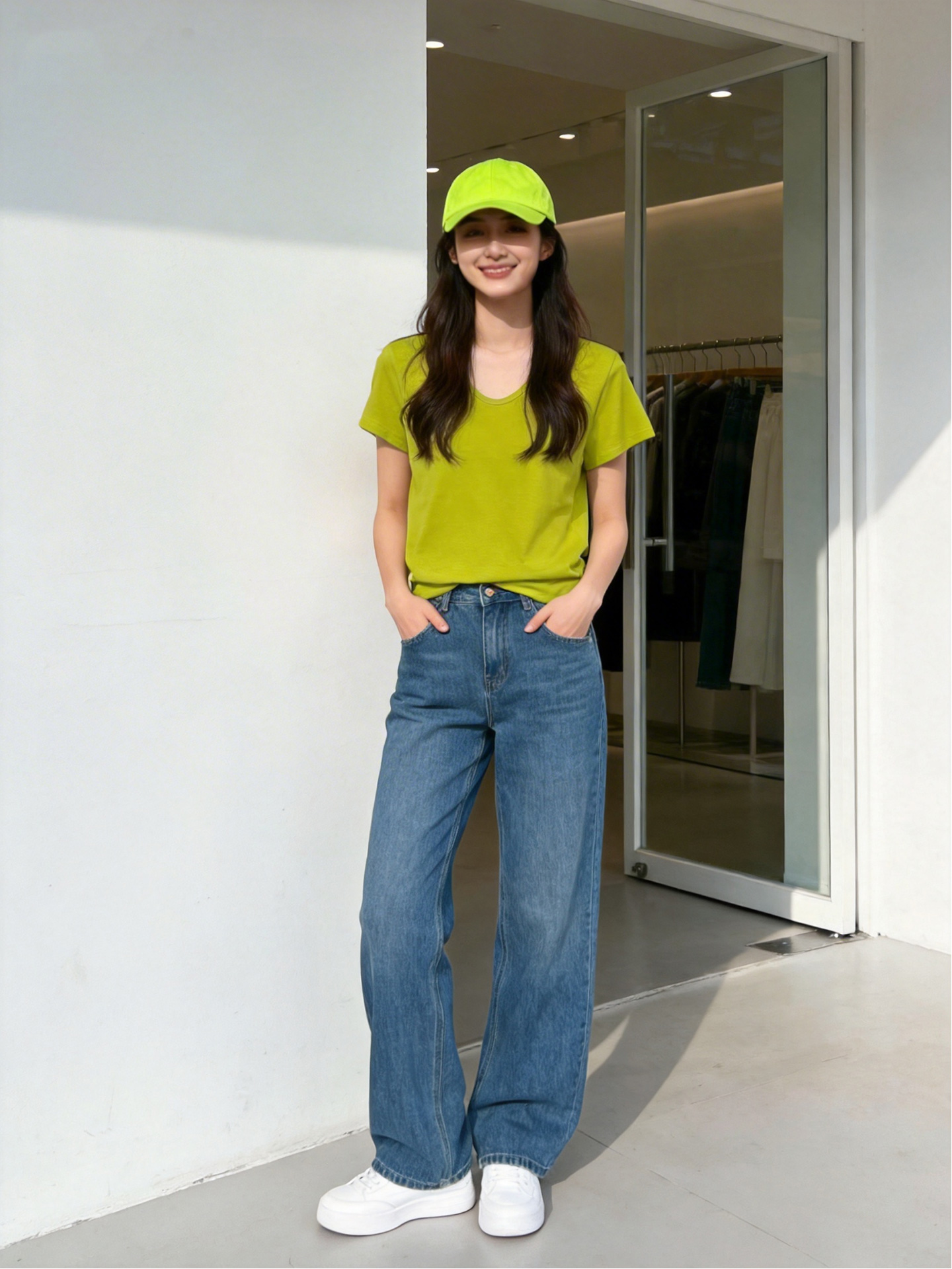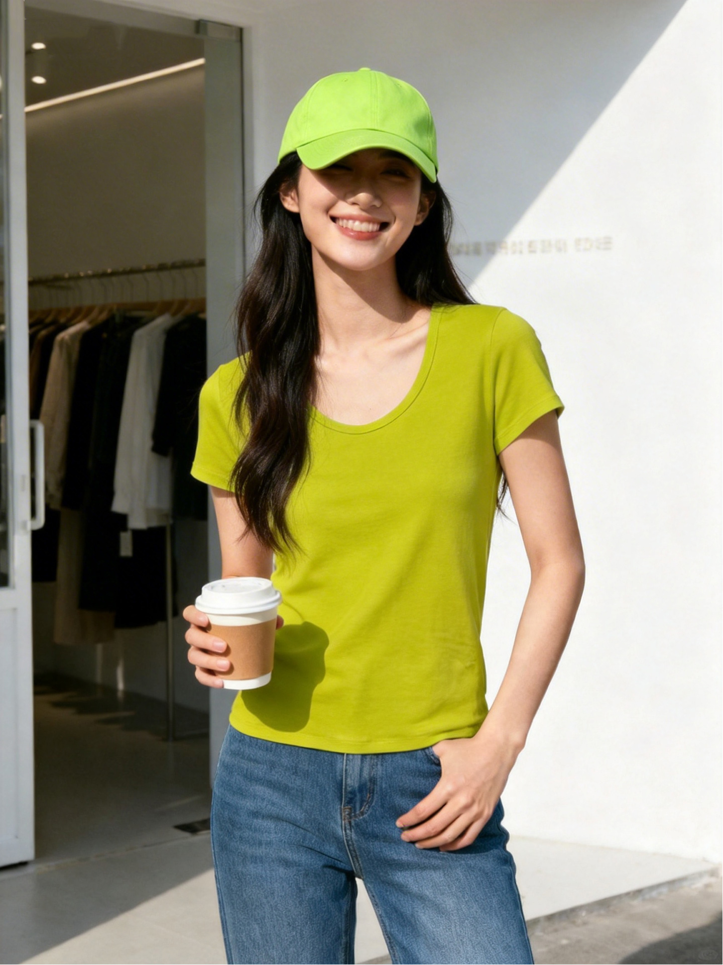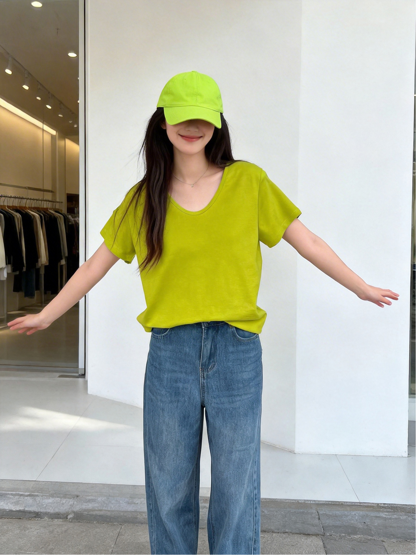 BY10495# 新款果绿色少女感小T恤基础款果绿色T恤 服裝批發女裝批發服飾貨源