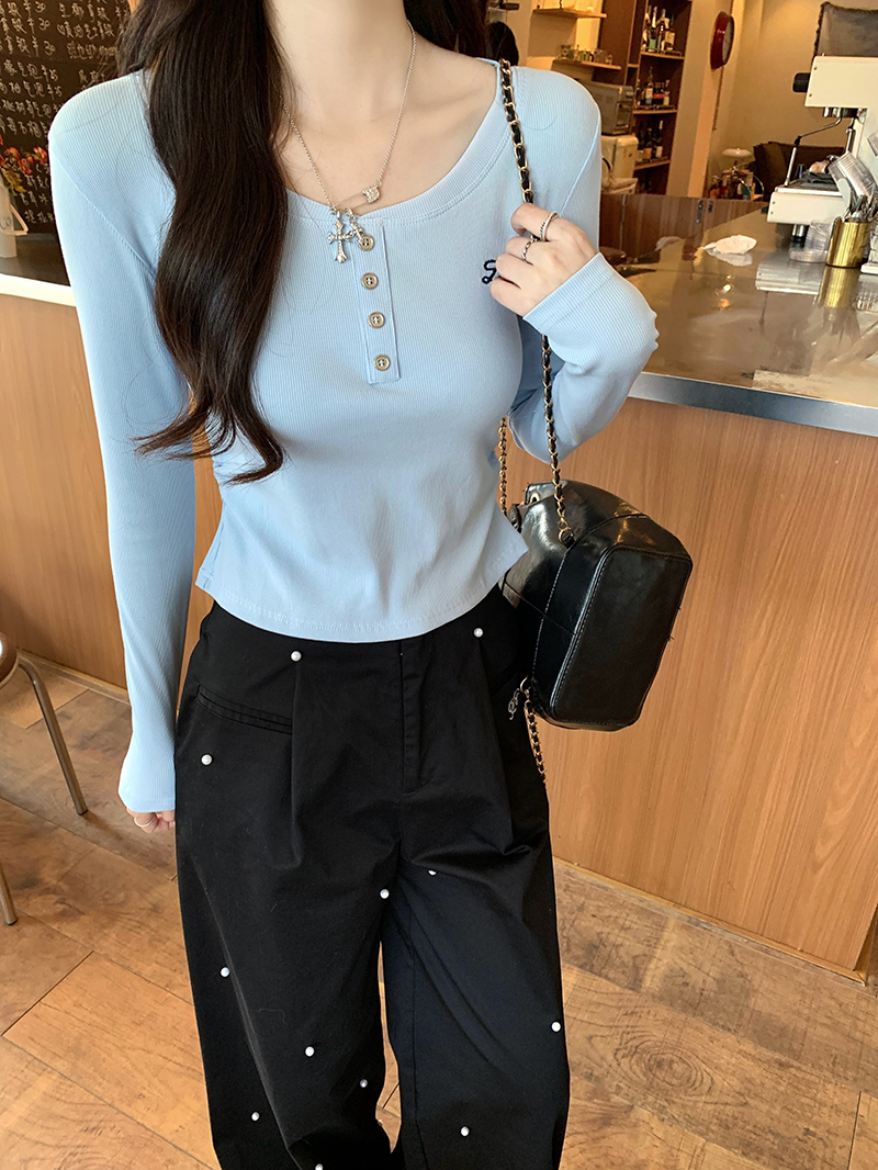 BY10505# 人棉长袖t恤女初秋新款薄刺绣花打底衫圆领上衣 服裝批發女裝批發服飾貨源