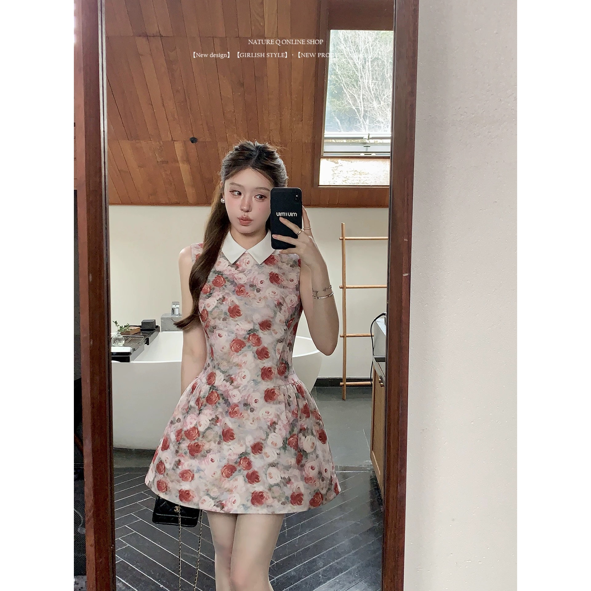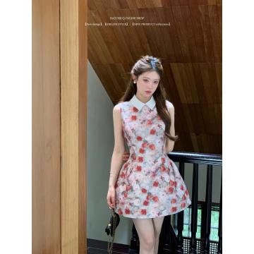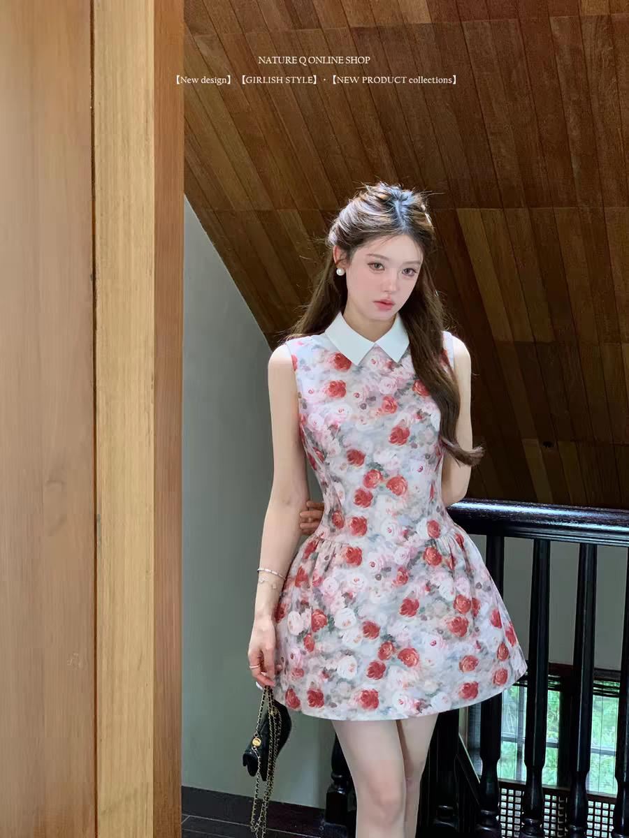 BY10535# 公主裙生日礼服高端轻奢小众富家千金miu系穿搭玫瑰印花连衣裙女 服裝批發女裝批發服飾貨源