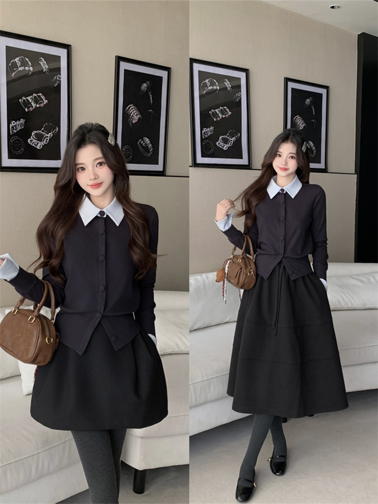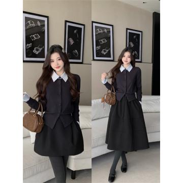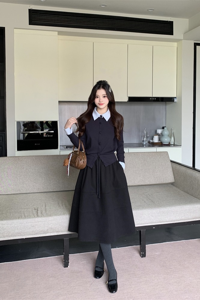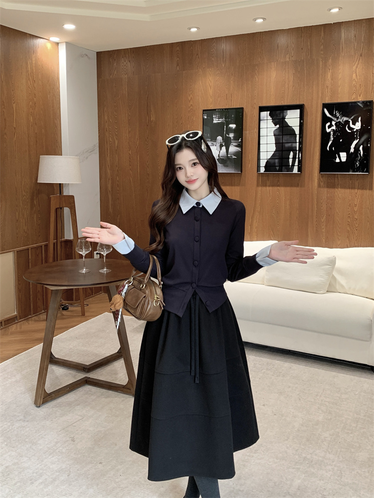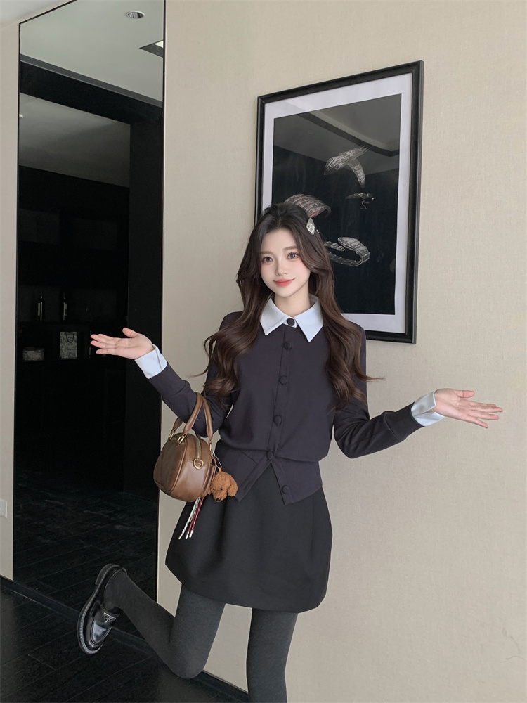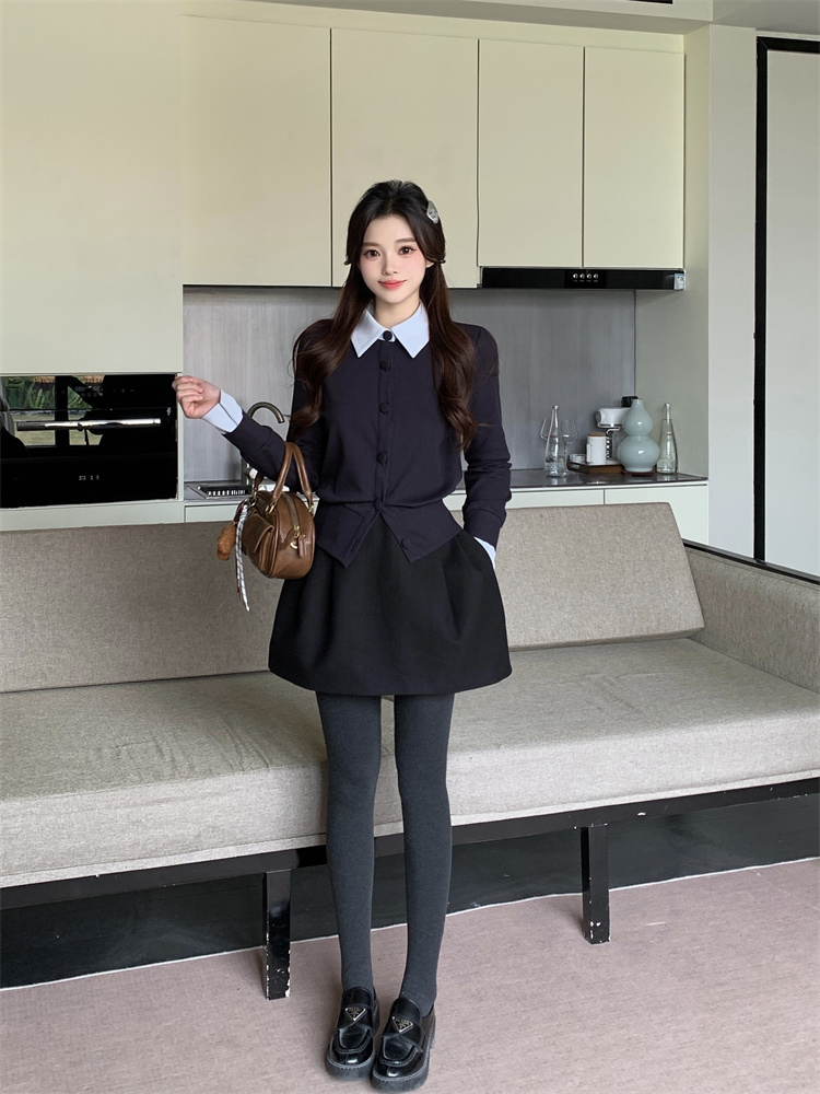 BY10661# 青藤学院春季撞色拼接假两件学院风针织上衣 服裝批發女裝批發服飾貨源