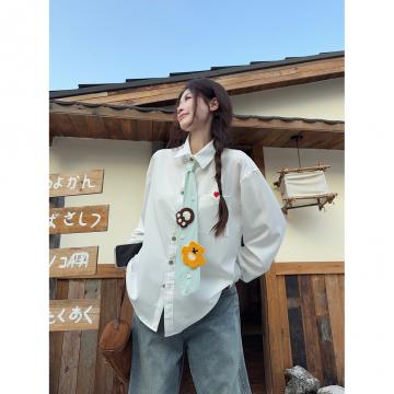 BY10675# 学院风撞色领带长袖白衬衫女春季新款别致设计感叠穿上衣 服裝批發女裝批發服飾貨源