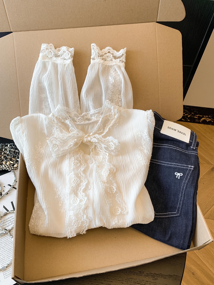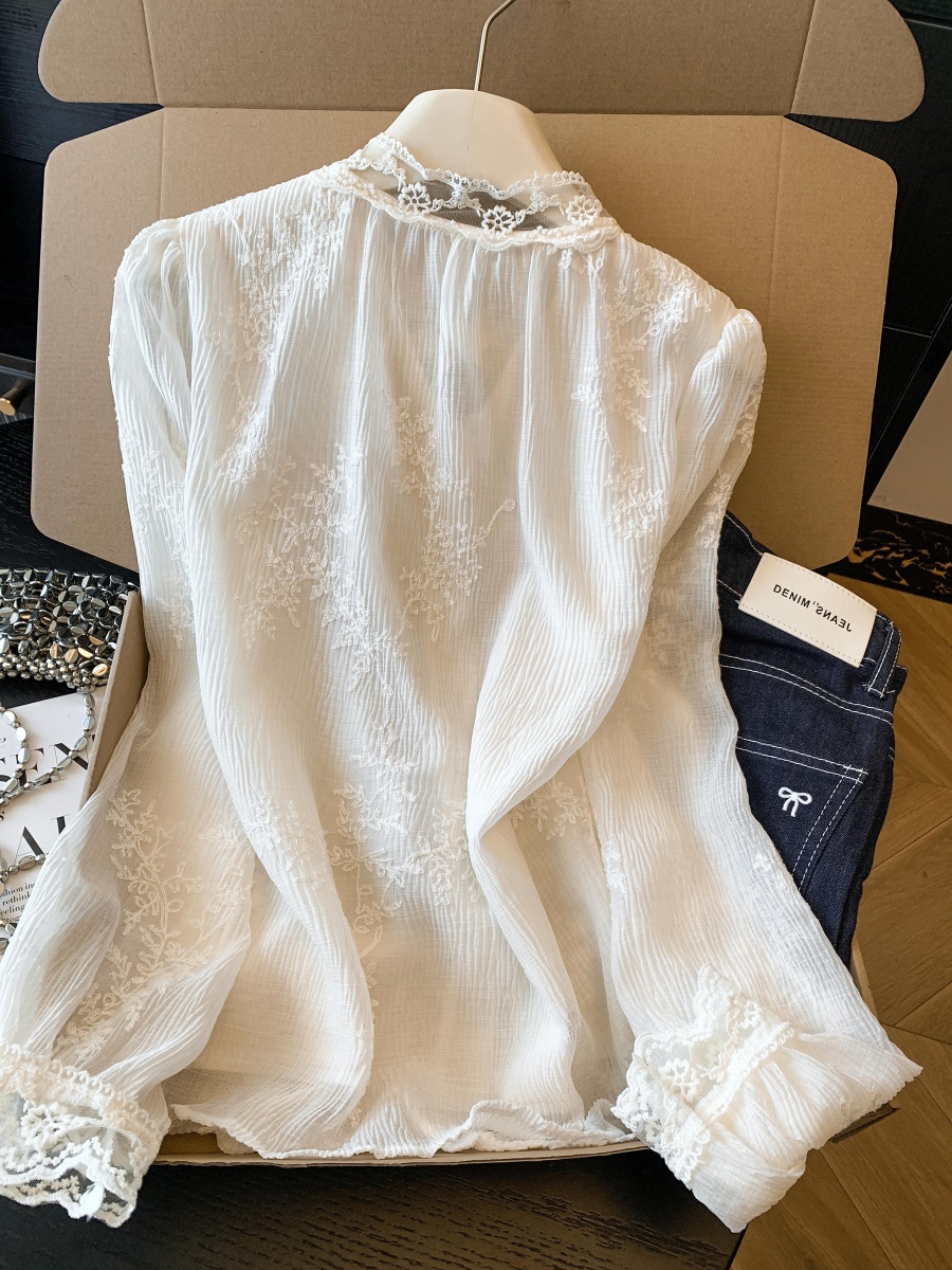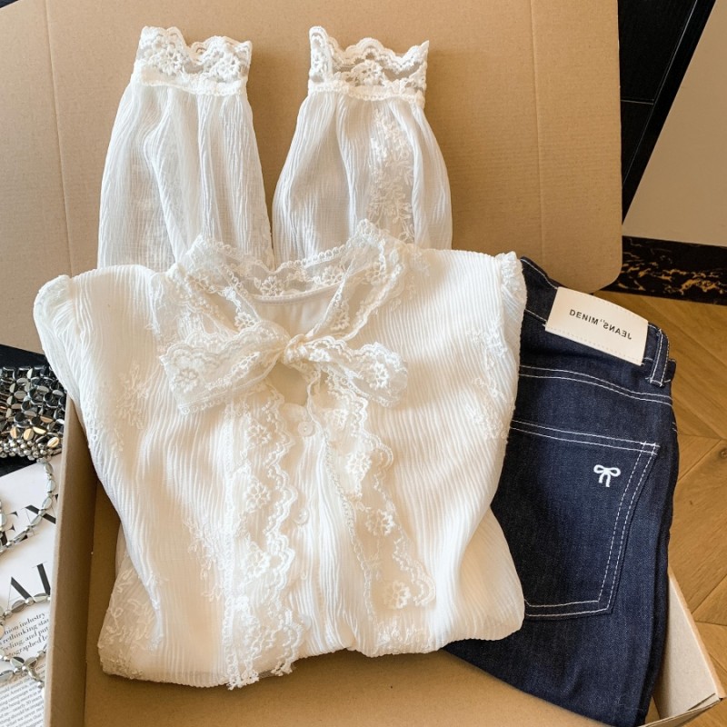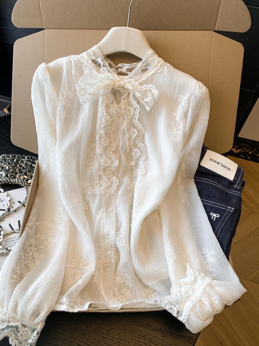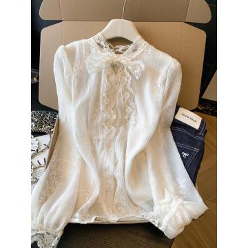 BY10695# 春季新款法式轻奢刺绣蕾丝衬衫飘带设计感上衣仙气飘飘 服裝批發女裝批發服飾貨源