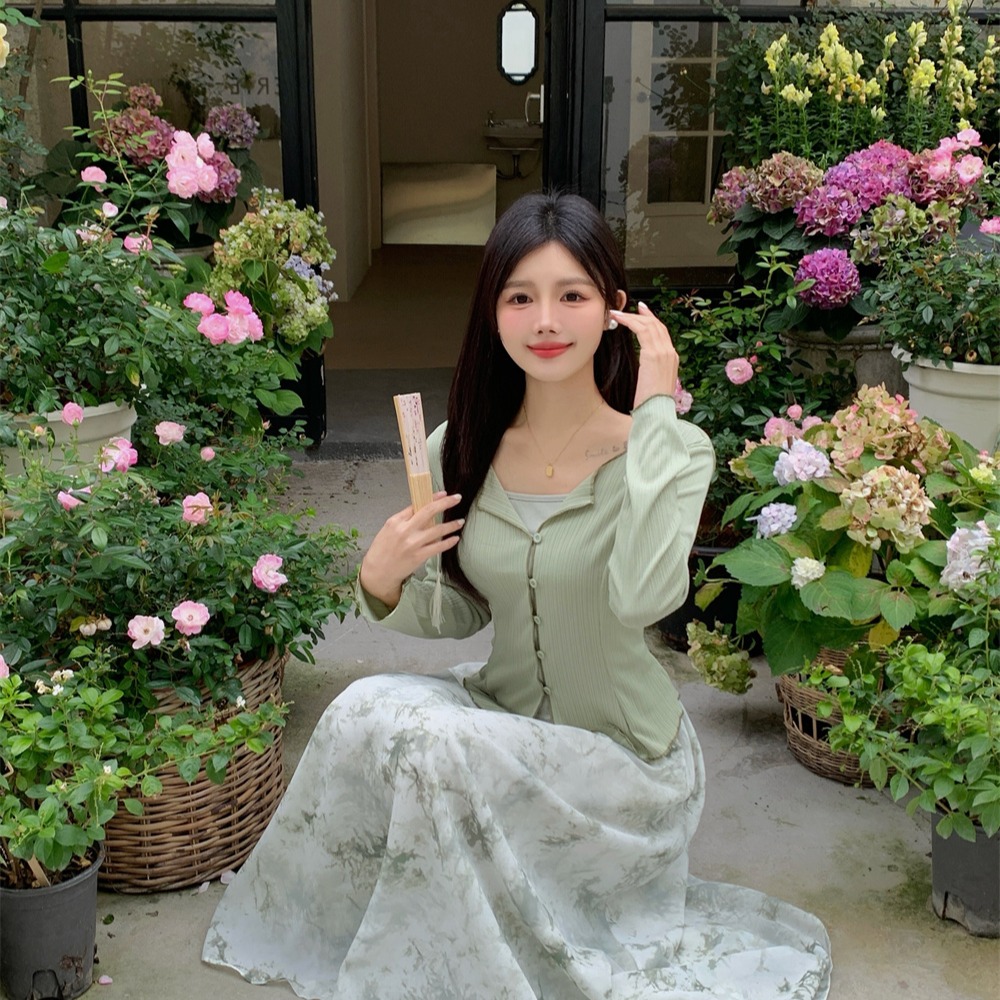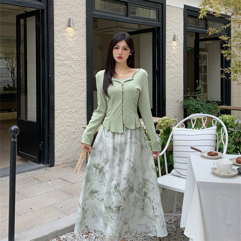 BY10973# 新中式薄款长袖防晒开衫+吊带+碎花半身裙女时尚三件套 服裝批發女裝批發服飾貨源