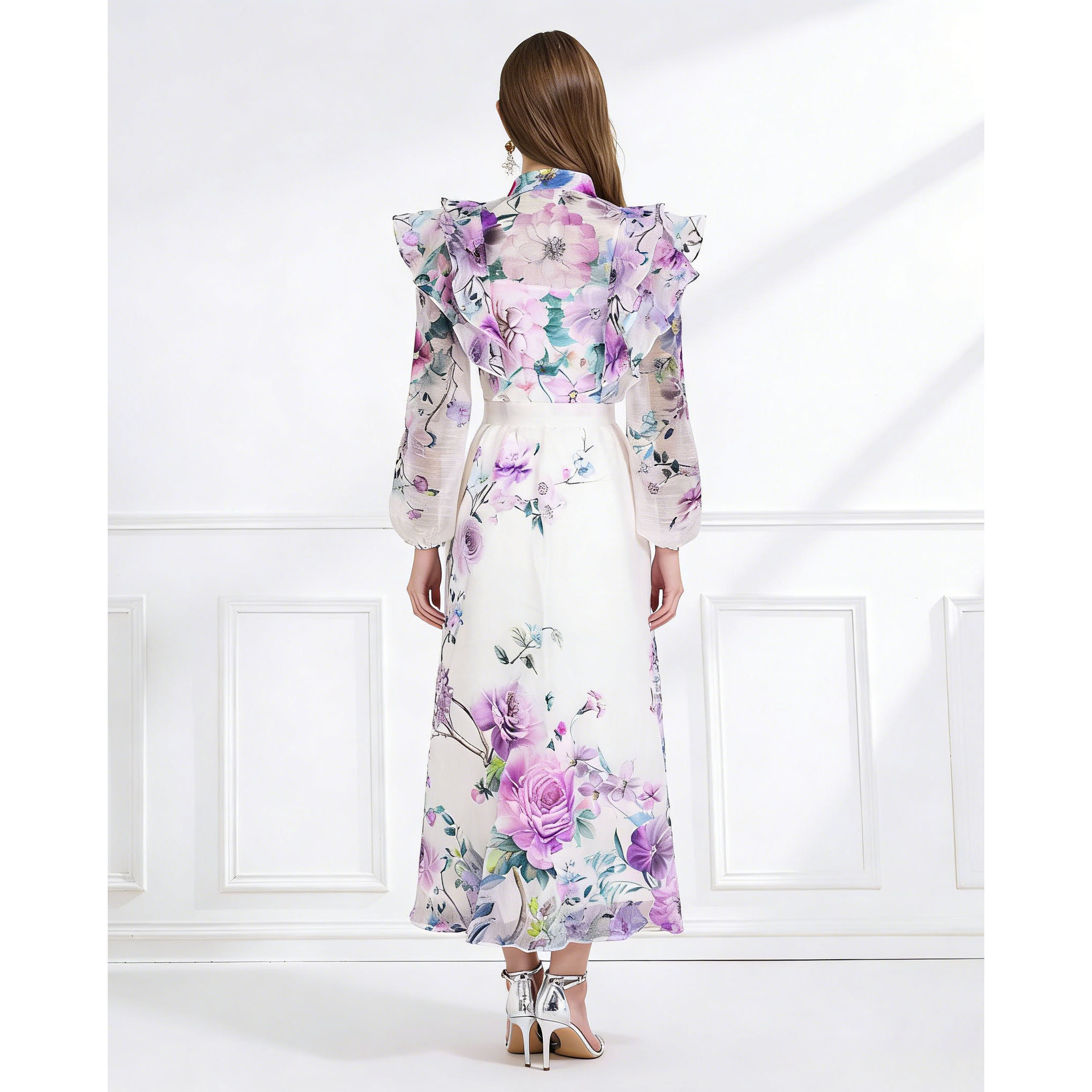 BY11232# 春夏季成衣彩色花卉印花飘逸风格两件套荷叶边裙 服裝批發女裝批發服飾貨源
