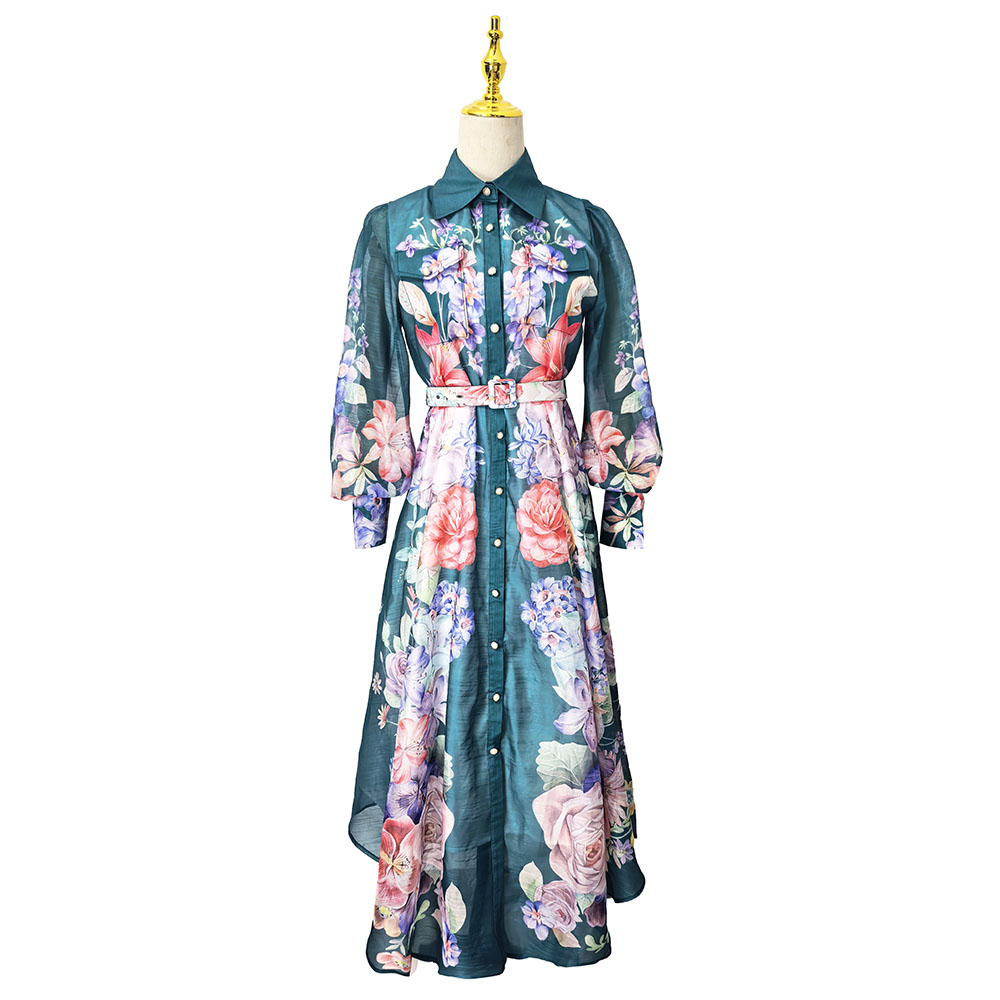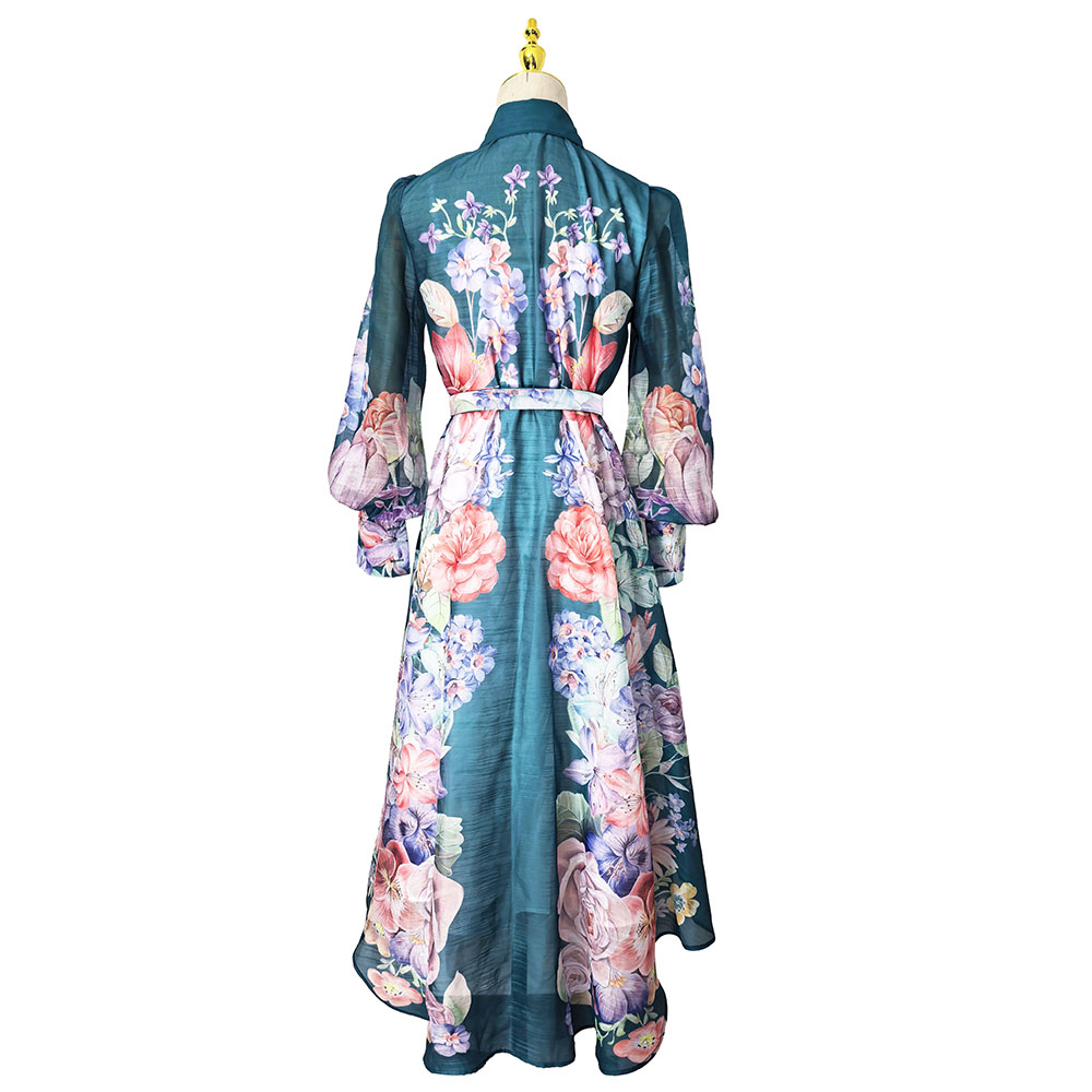 BY11235# 成衣新款立领灯笼袖不规则裙摆收腰连衣裙 服裝批發女裝批發服飾貨源