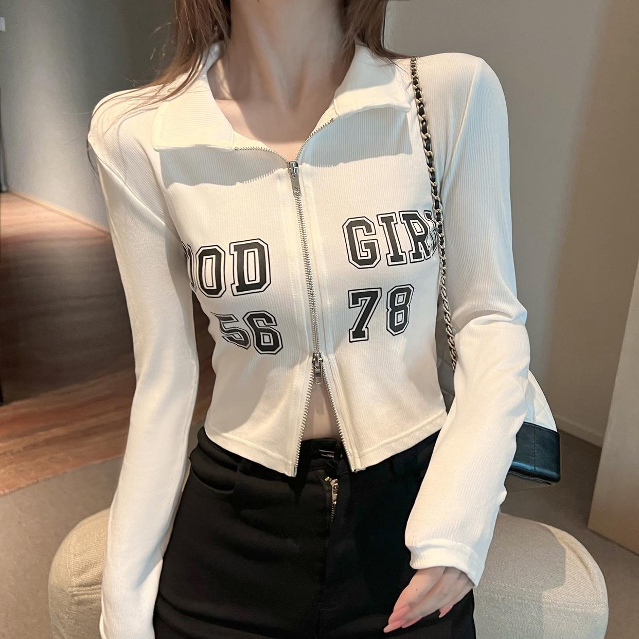 BY11319# 修身字母印花拉链短款上衣女春秋 服裝批發女裝批發服飾貨源