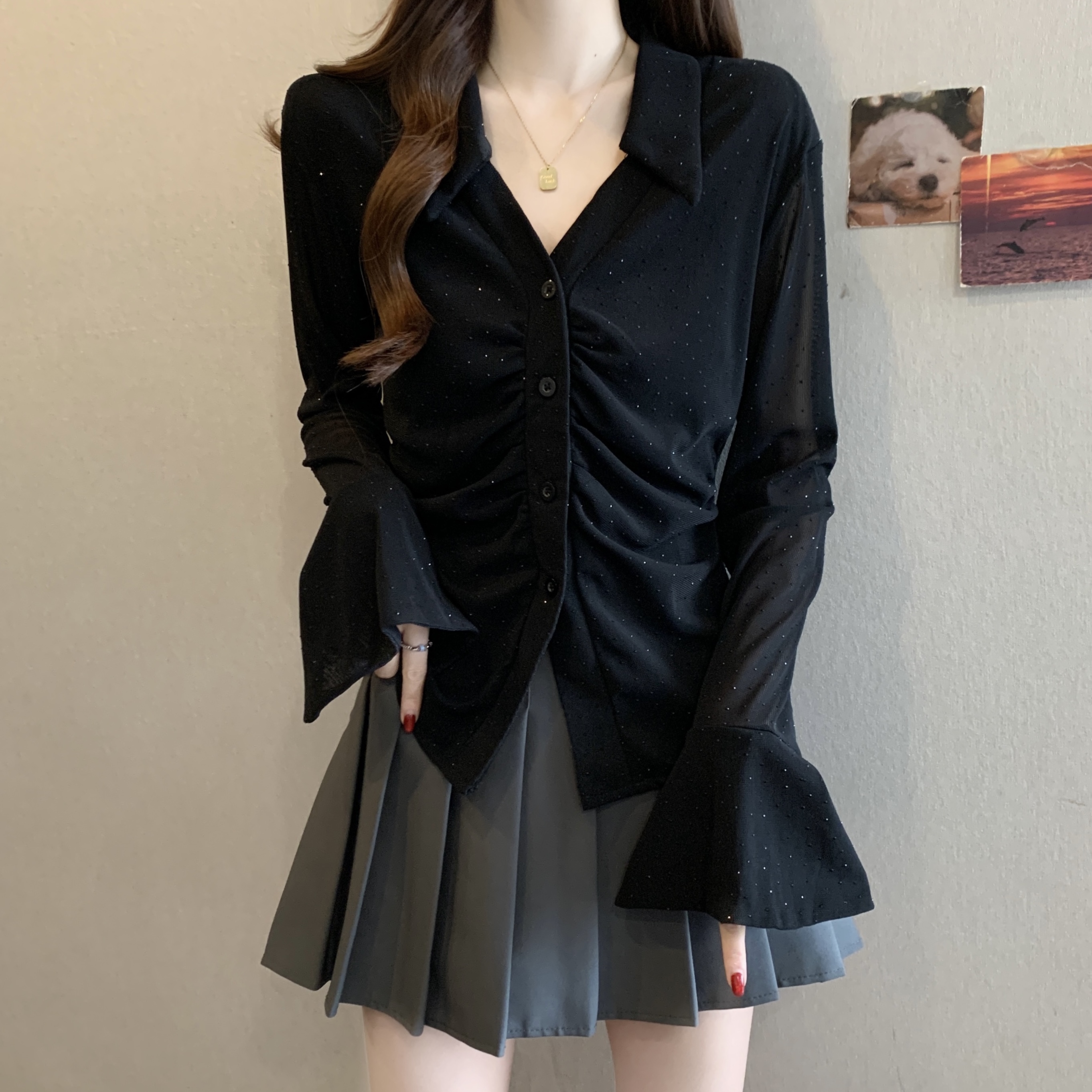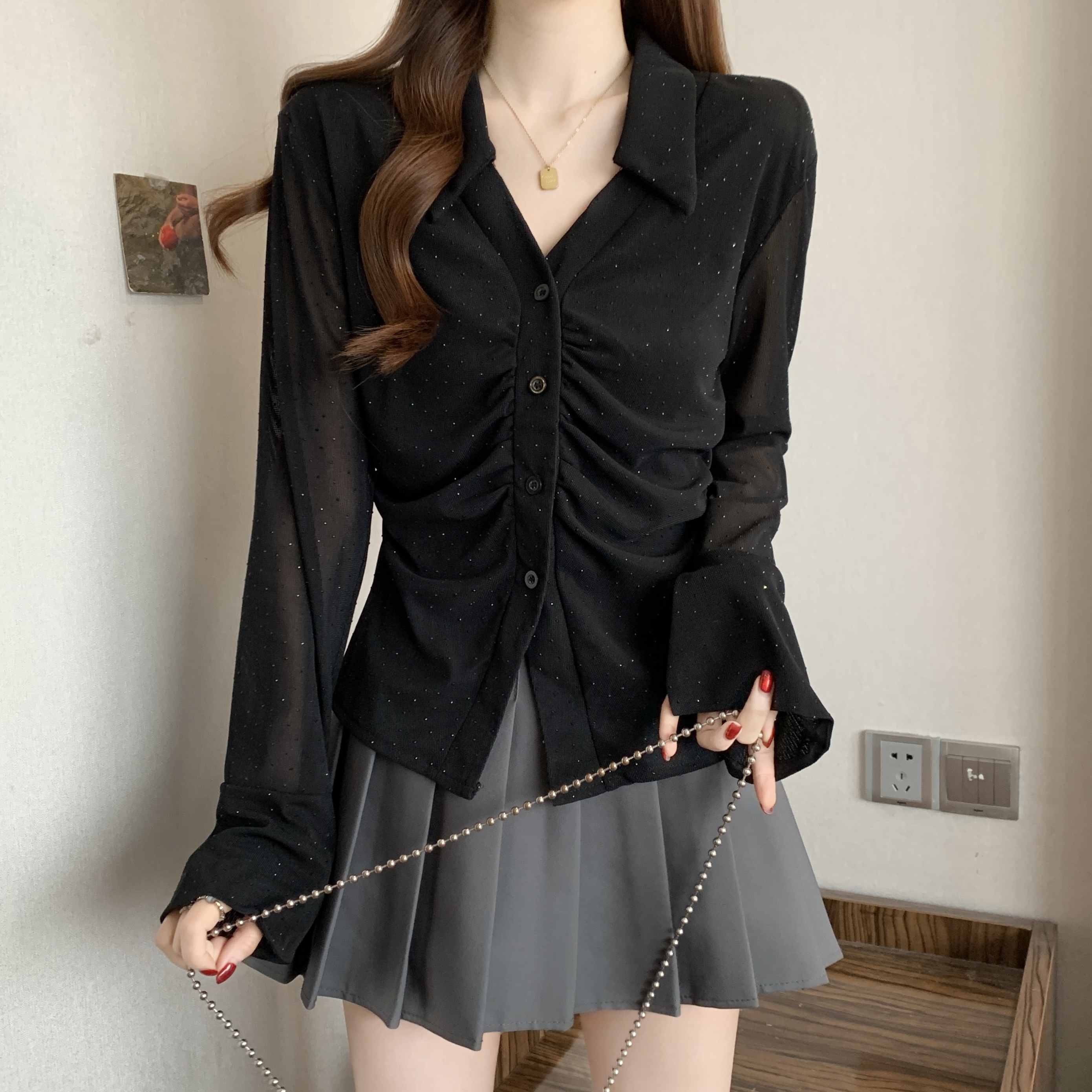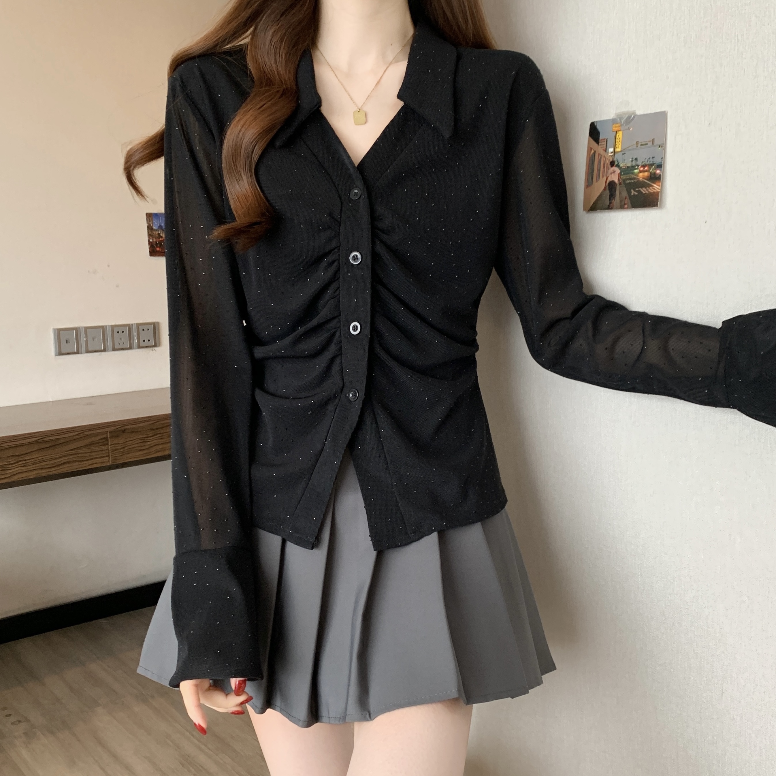 BY11336# 新款春款大码女装胖MM设计感闪金小众显瘦百搭衬衫上衣 服裝批發女裝批發服飾貨源