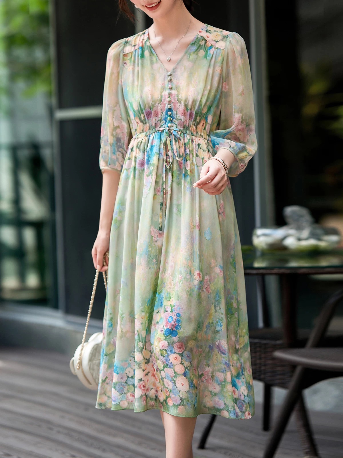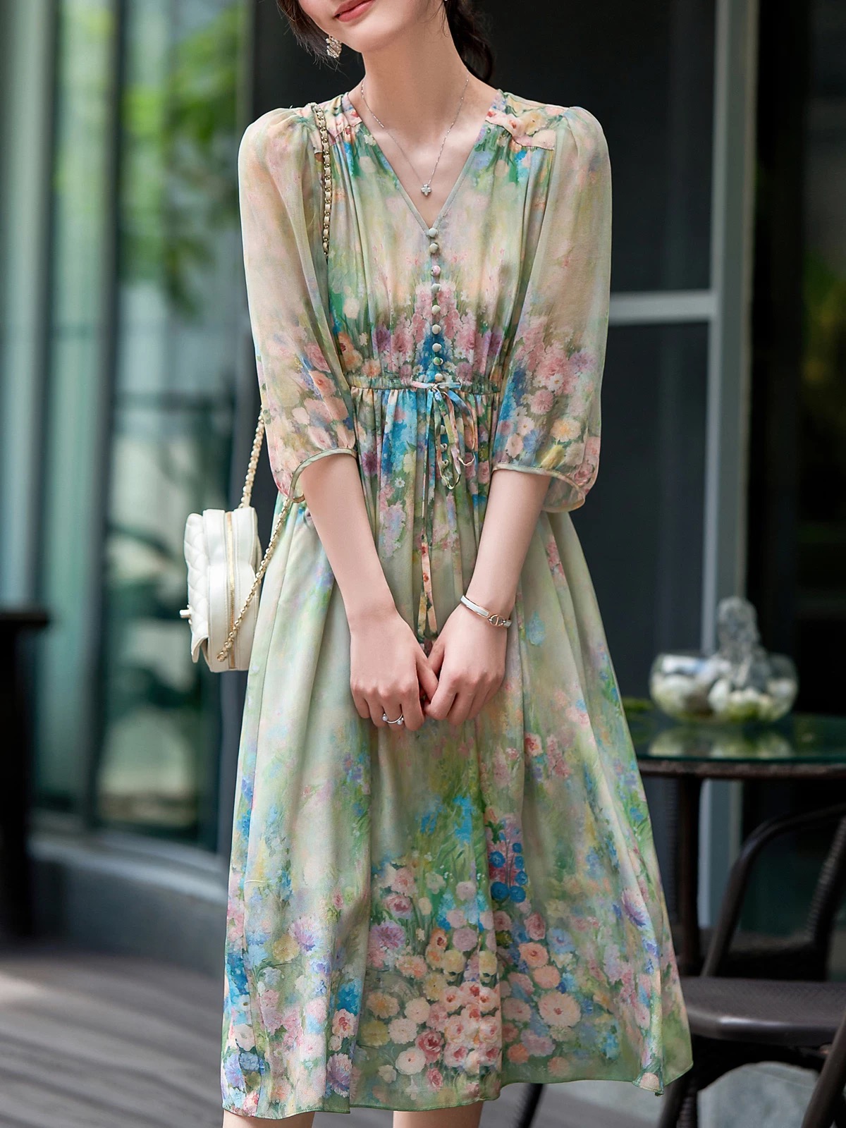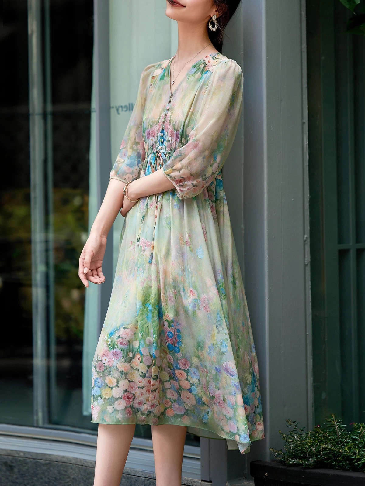 BY11340# 连衣裙女春夏新款巨好看的裙子法式浪漫氛围感印花裙 服裝批發女裝批發服飾貨源
