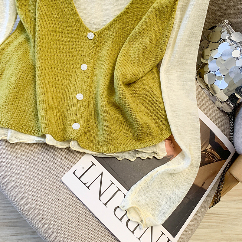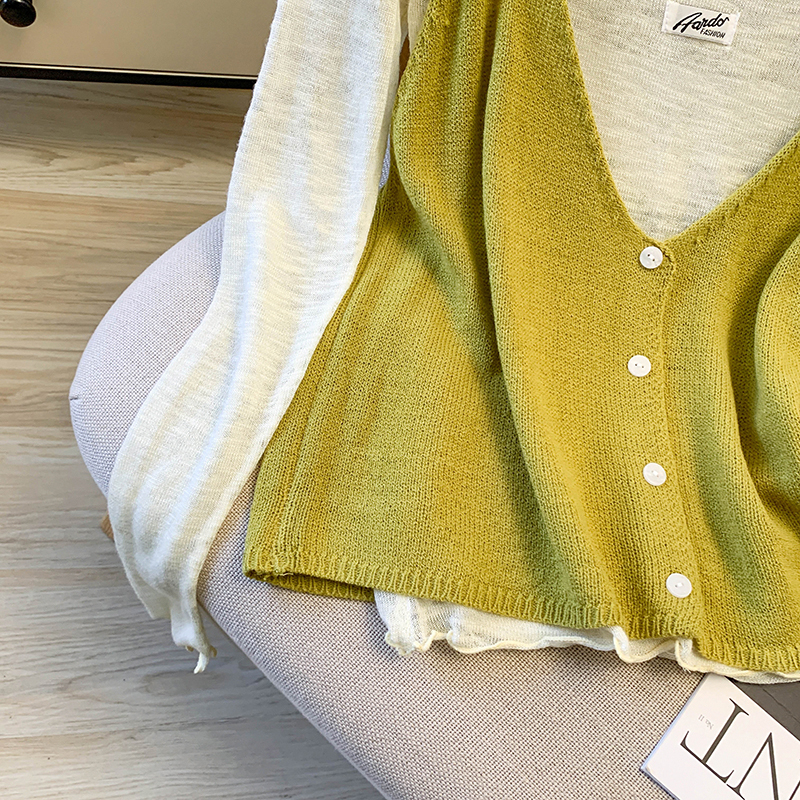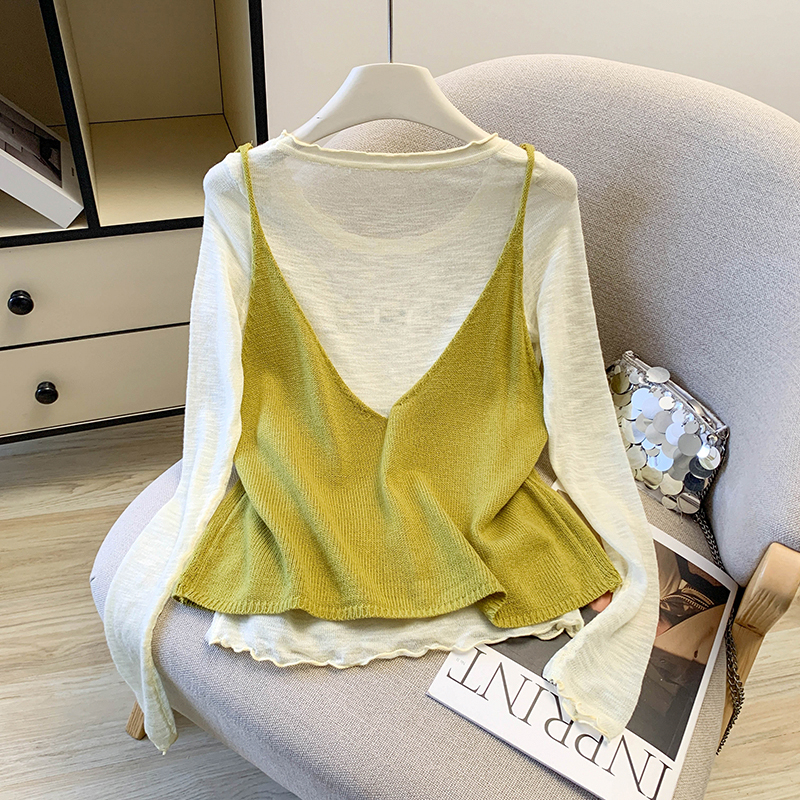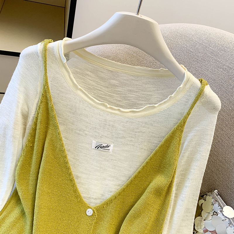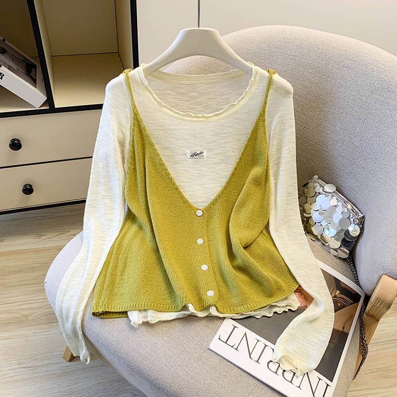 BY11390# 韩系软糯纯色针织吊带卷边透视亲肤减龄T春季新款两件套 服裝批發女裝批發服飾貨源