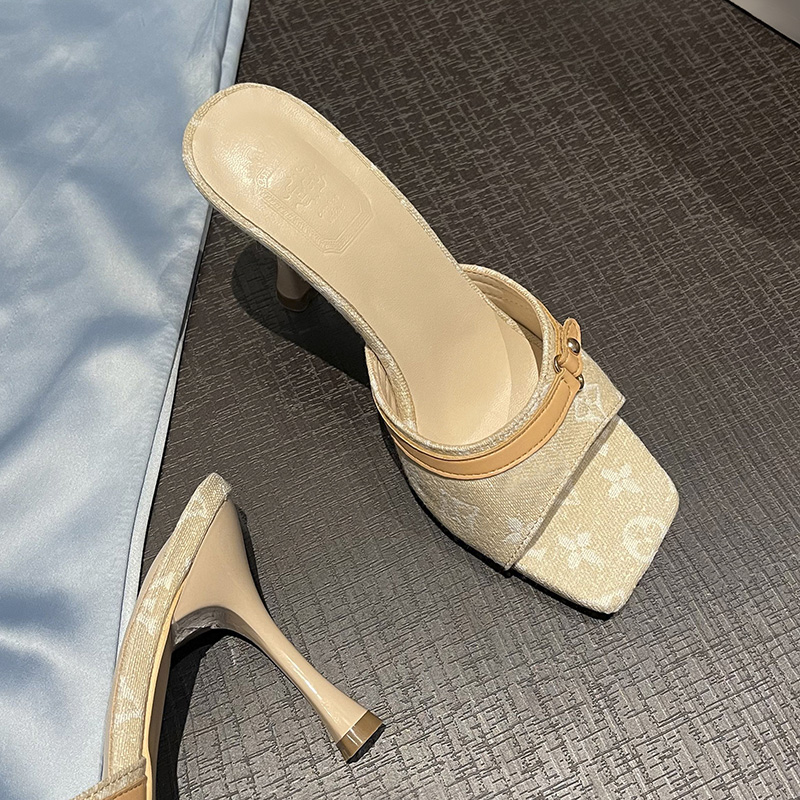 X-33070# 春夏季新款彩色字母印花拖鞋女小猫跟性感中跟一字拖拼色凉拖 鞋子批发女鞋批发凉鞋货源