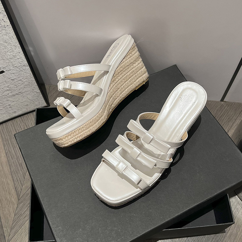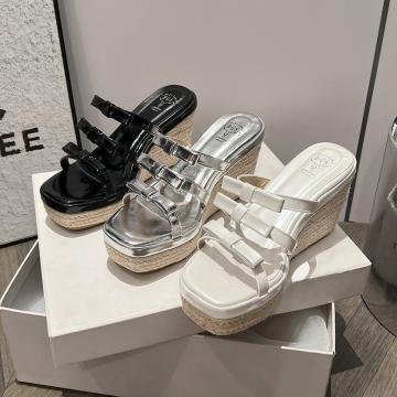 X-33072# 坡跟拖鞋女外穿新款增高蝴蝶结超火银拖法式松糕底罗马凉拖鞋 鞋子批发女鞋批发凉鞋货源