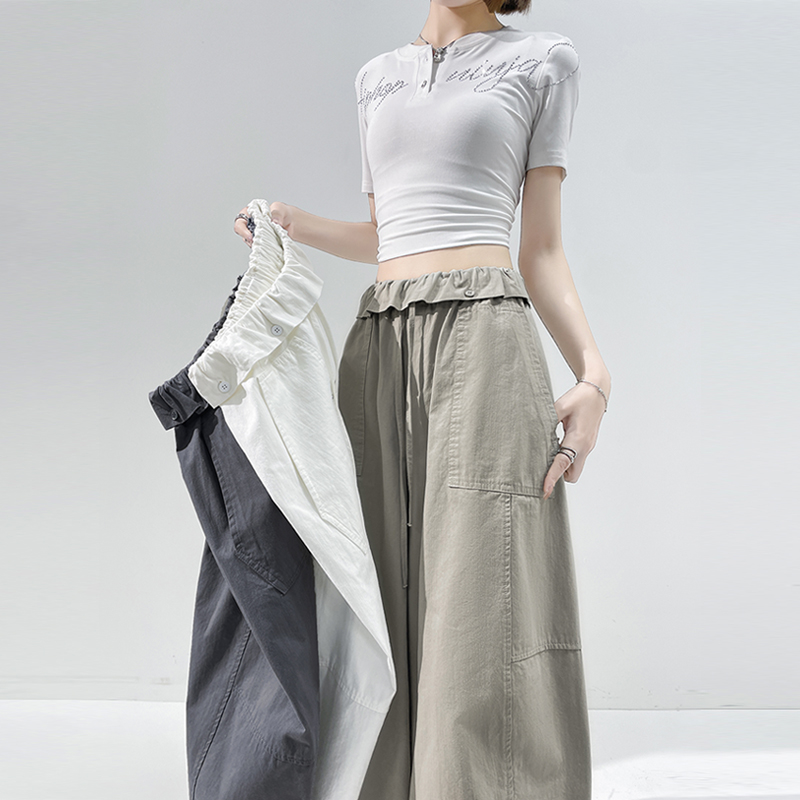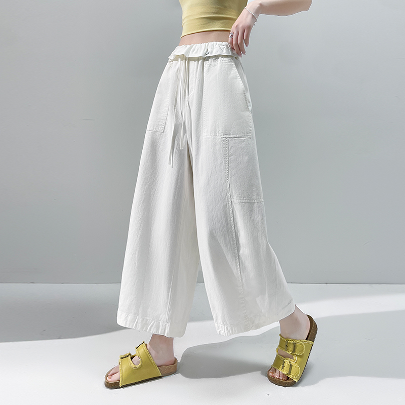 BY17454# 夏季新款全棉洗水宽松九分阔腿裤女松紧高腰休闲裤气球裤 服裝批發女裝批發服飾貨源