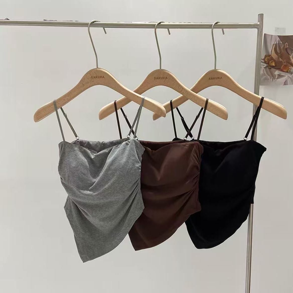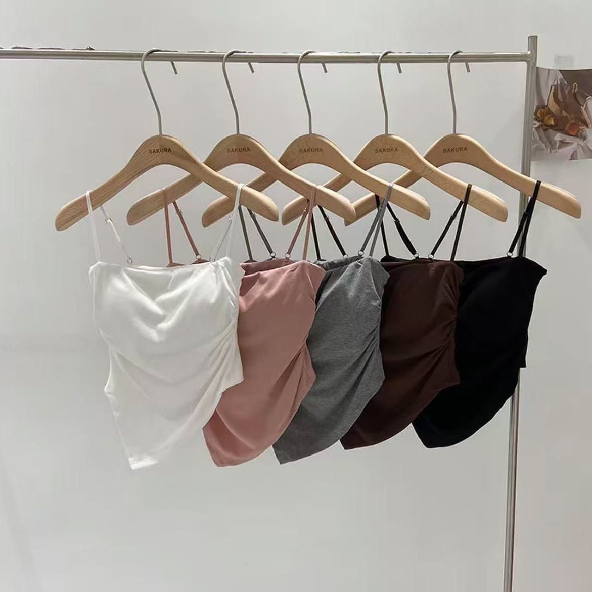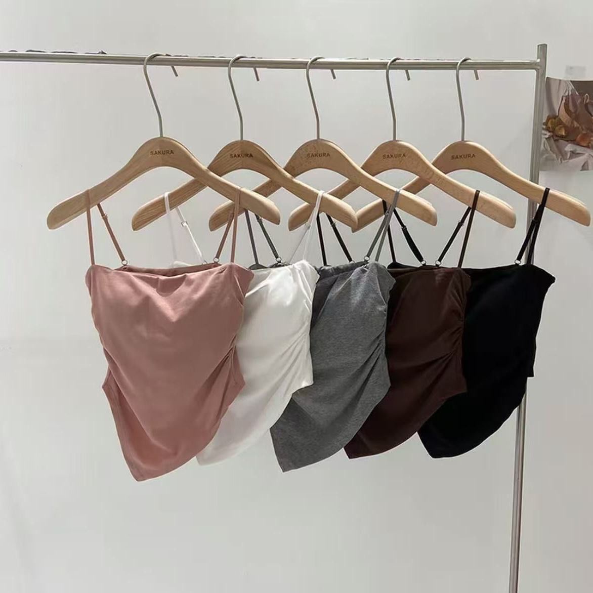 BY18205# 法式带胸垫褶皱细肩带吊带背心女夏季内搭外穿一字肩抹胸甜辣上衣 服裝批發女裝批發服飾貨源