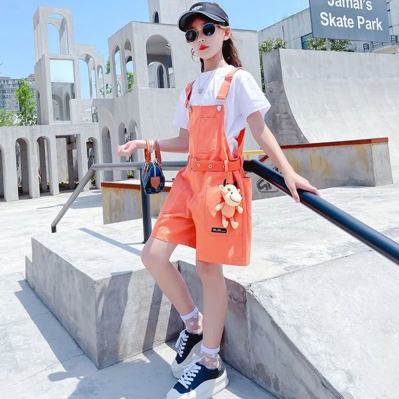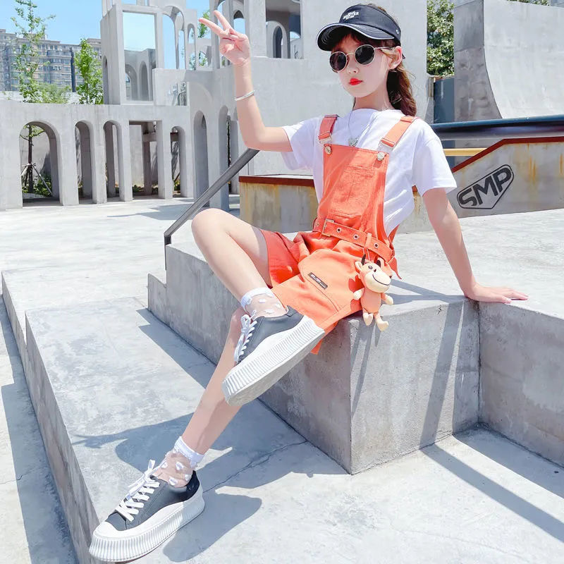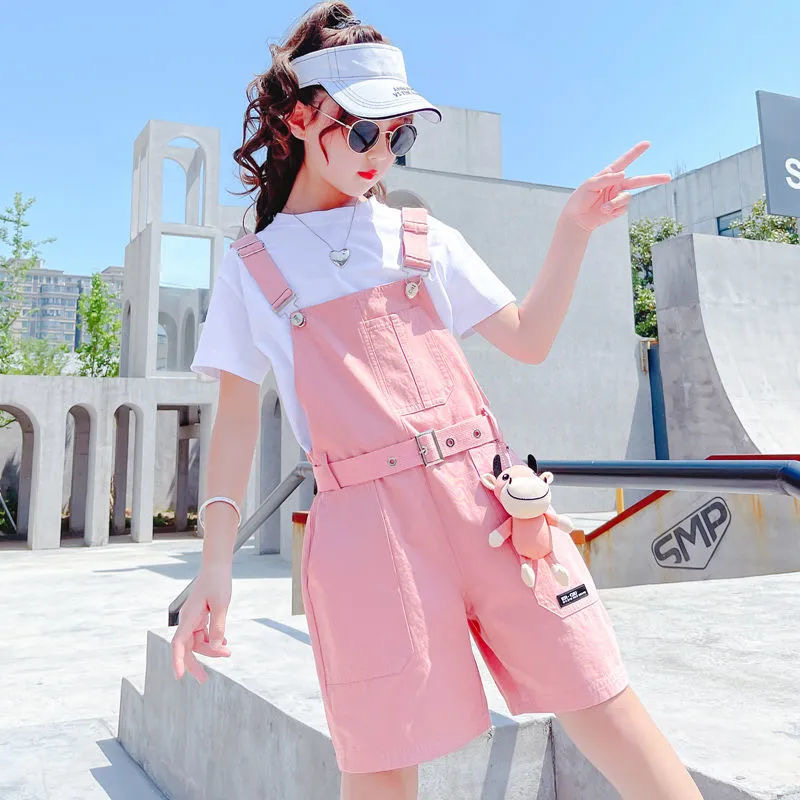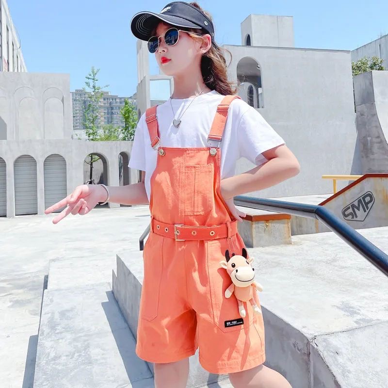 PS90004# 夏季短袖中学生背带裤短裤宽松炸街青少年
