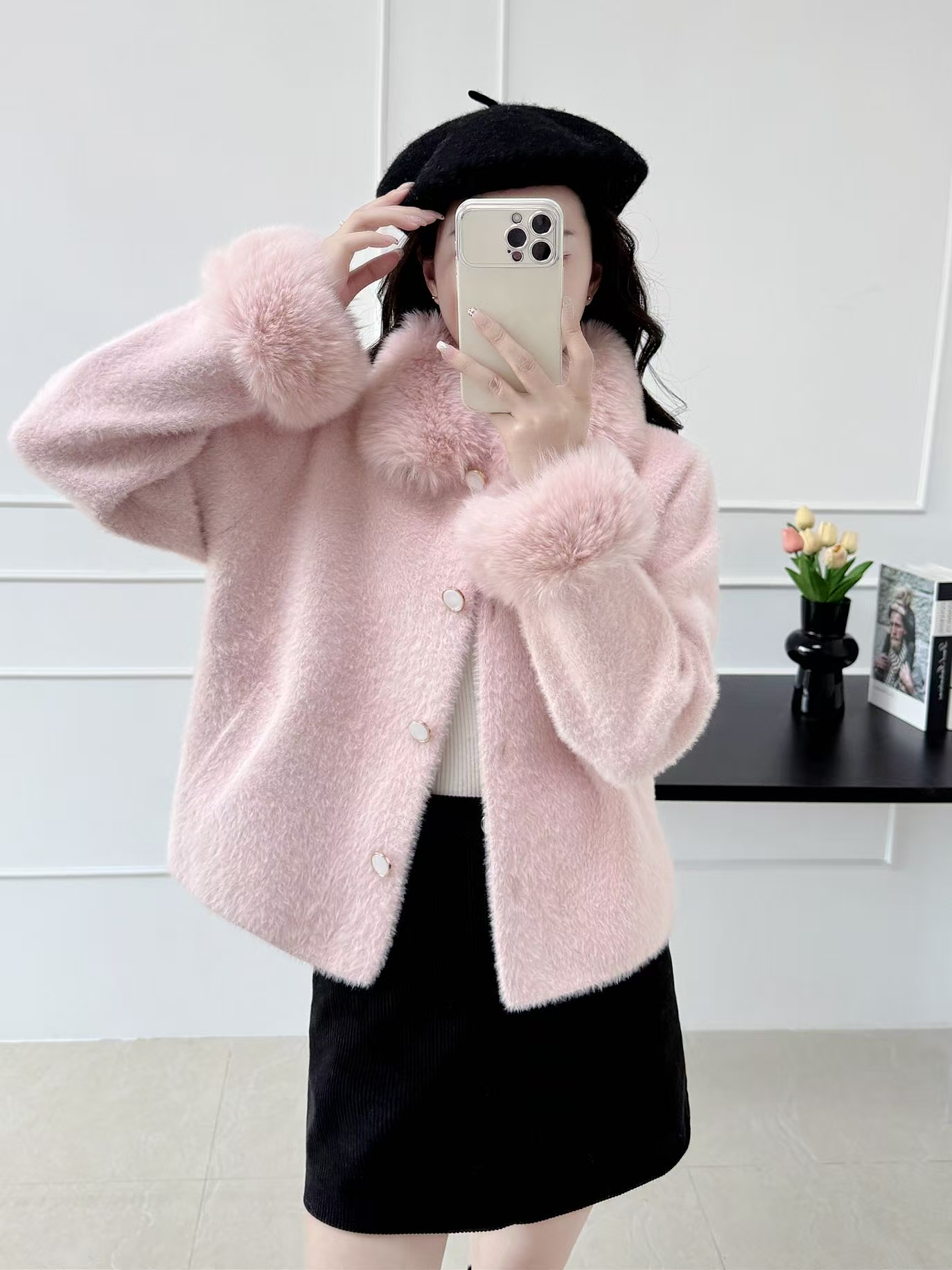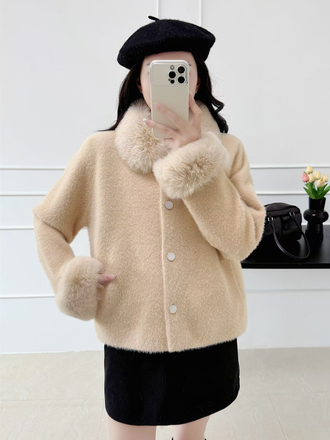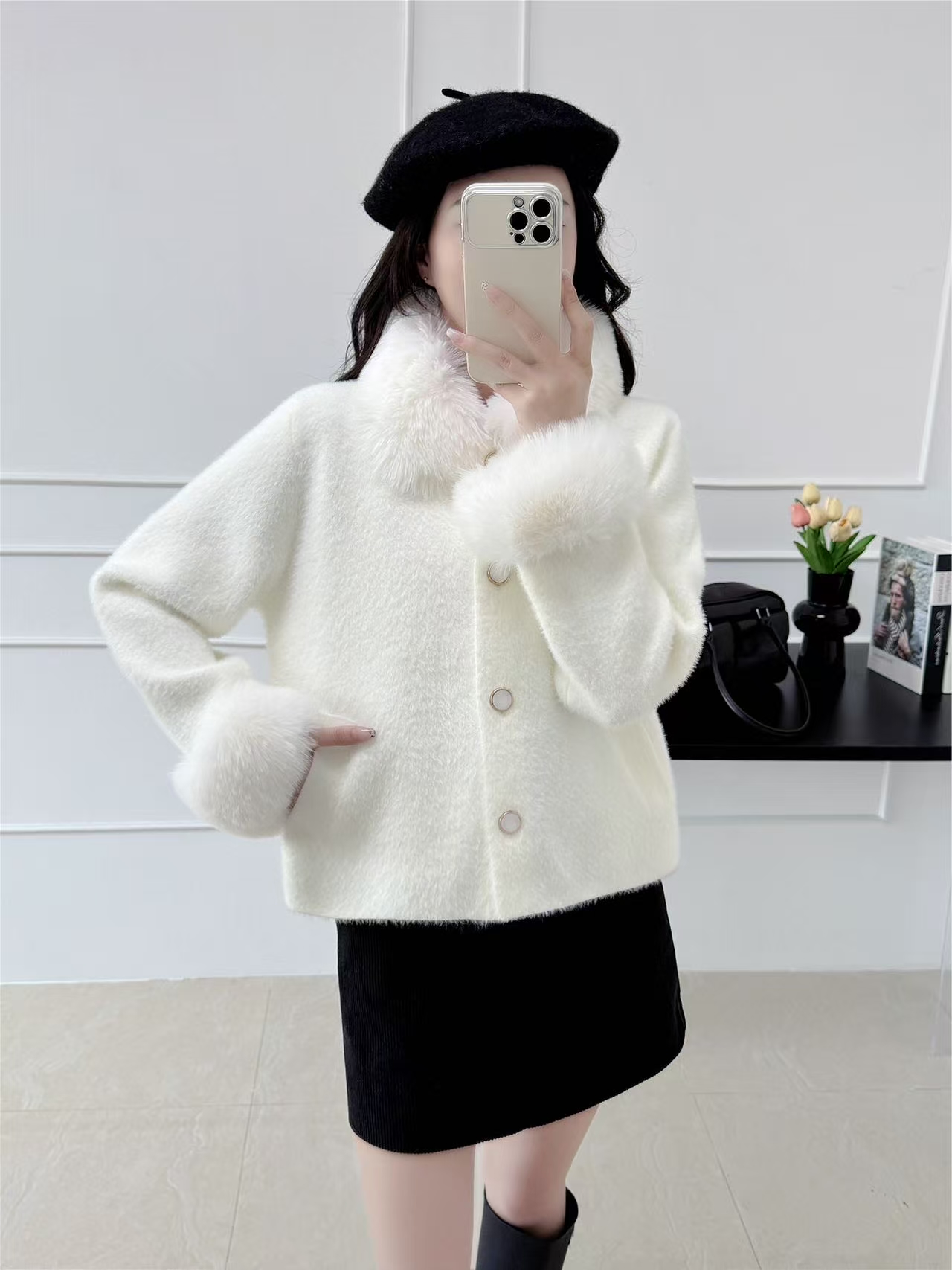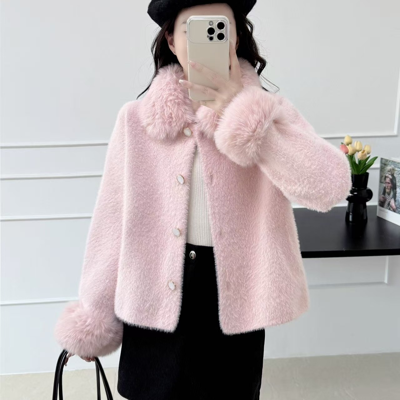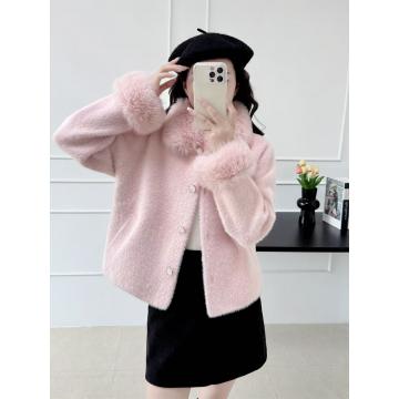 FA52618# 名媛小香风法式小个子外套女秋冬贵气毛领水貂毛开衫上衣 服裝批發女裝批發服飾貨源