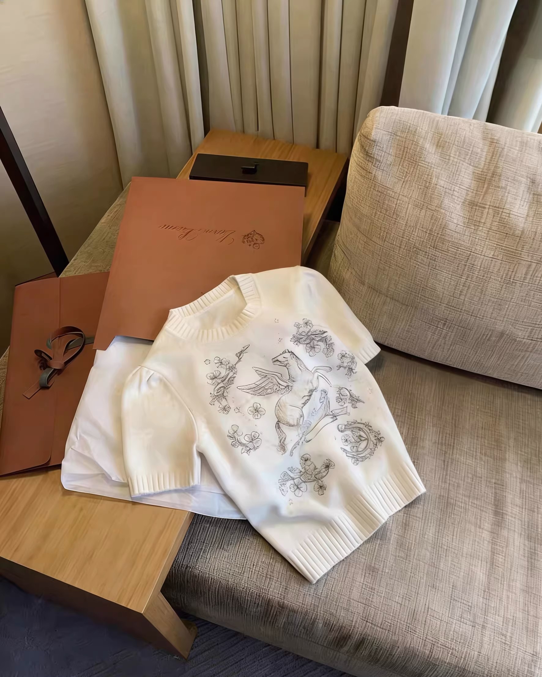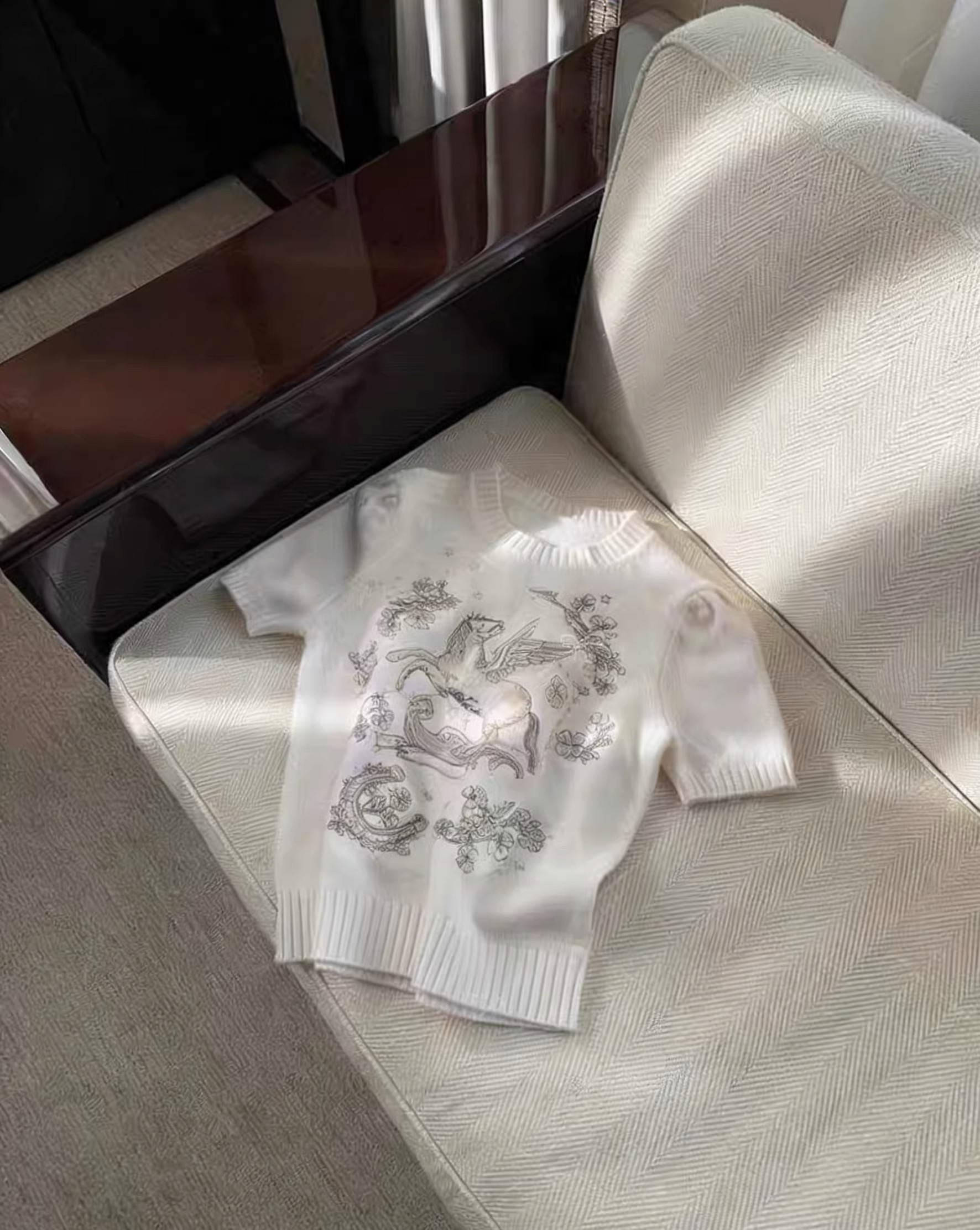 BY11002# 樊樊同款新年小马柔软重工刺绣6万针马年显瘦正肩短袖 服裝批發女裝批發服飾貨源