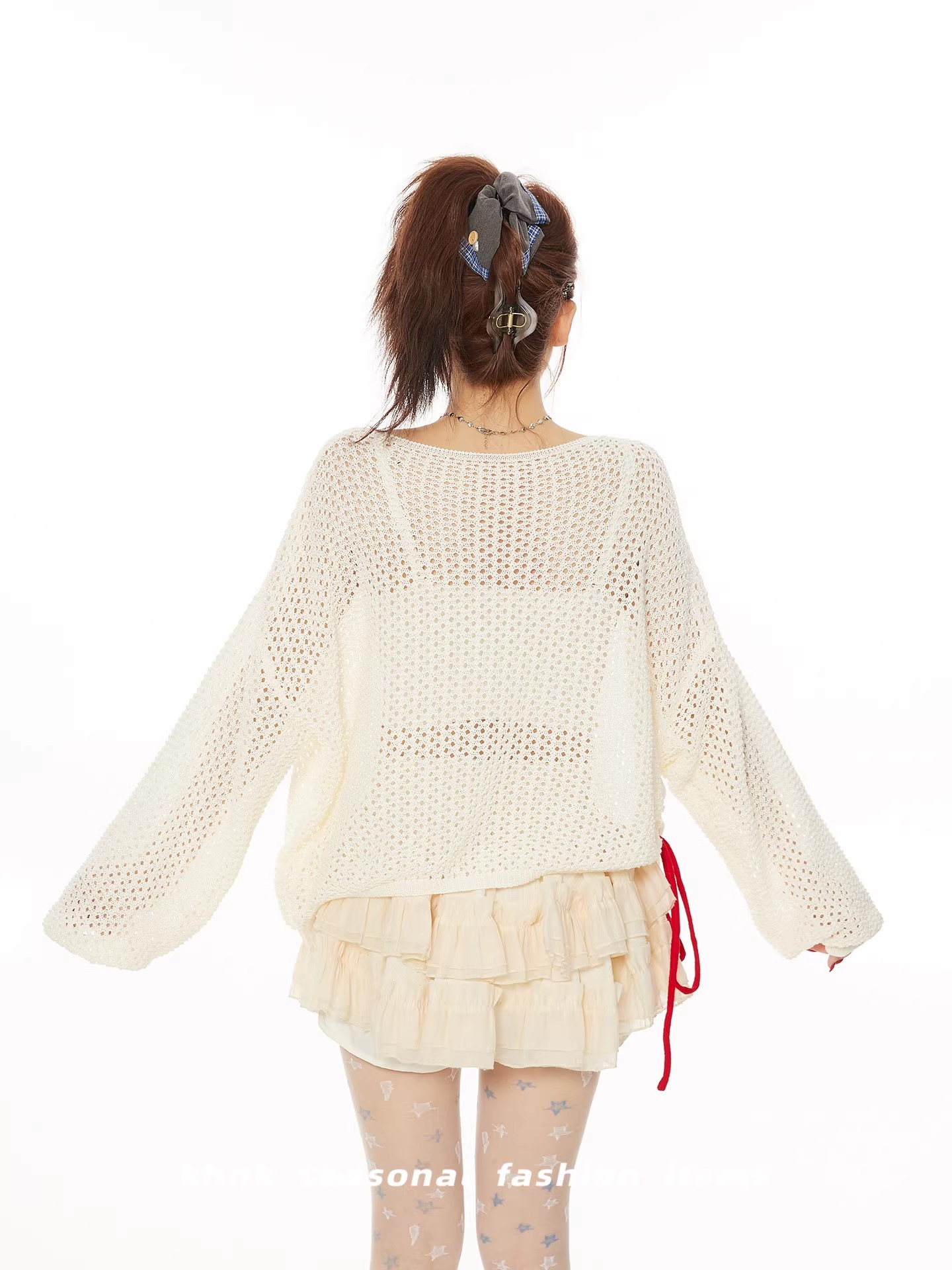 BY11004# 小众设计镂空钩花独特漂亮大领口罩衫女夏季薄款甜美短款针织上衣 服裝批發女裝批發服飾貨源