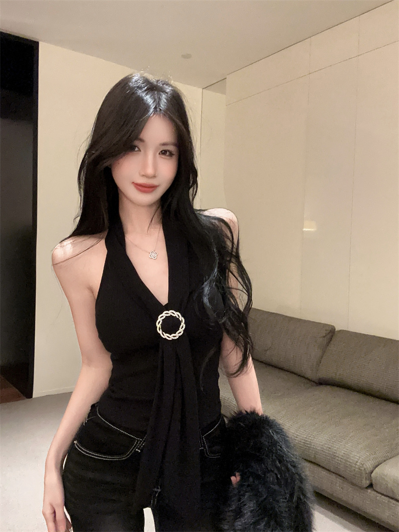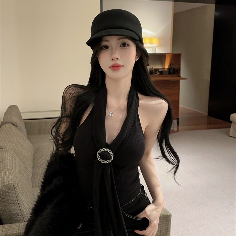 纯欲风性感飘带挂脖吊带背心百搭洋气短款小心机上衣女 服裝批發女裝批發服飾貨源