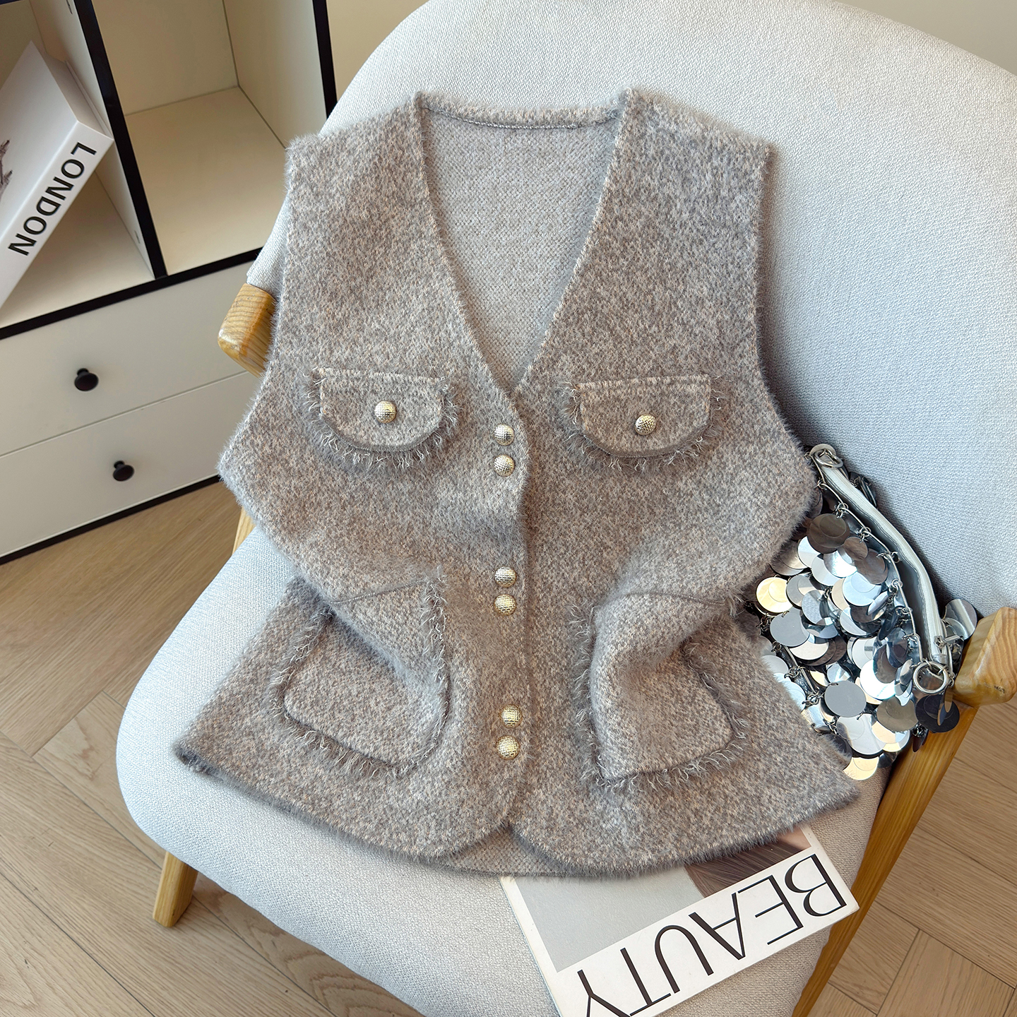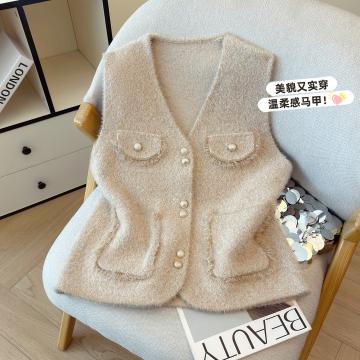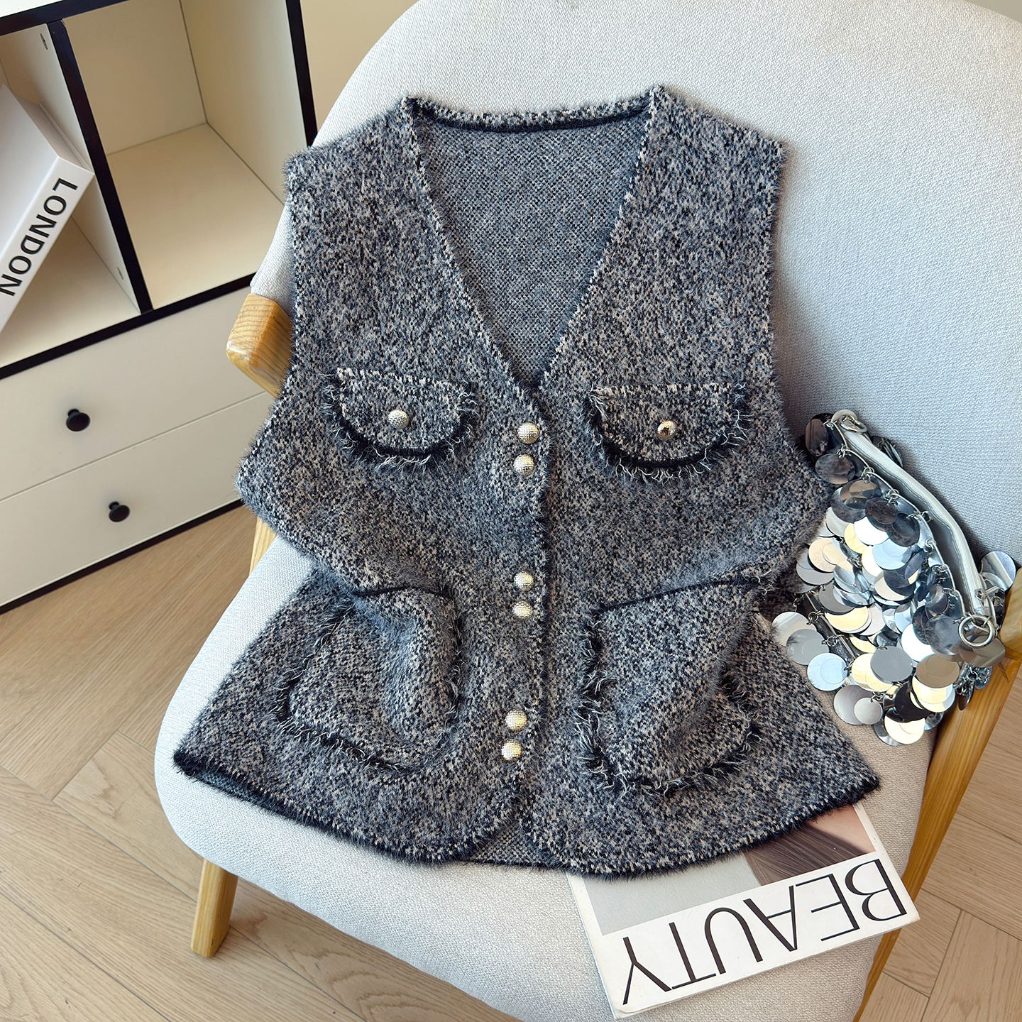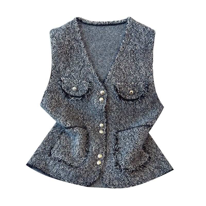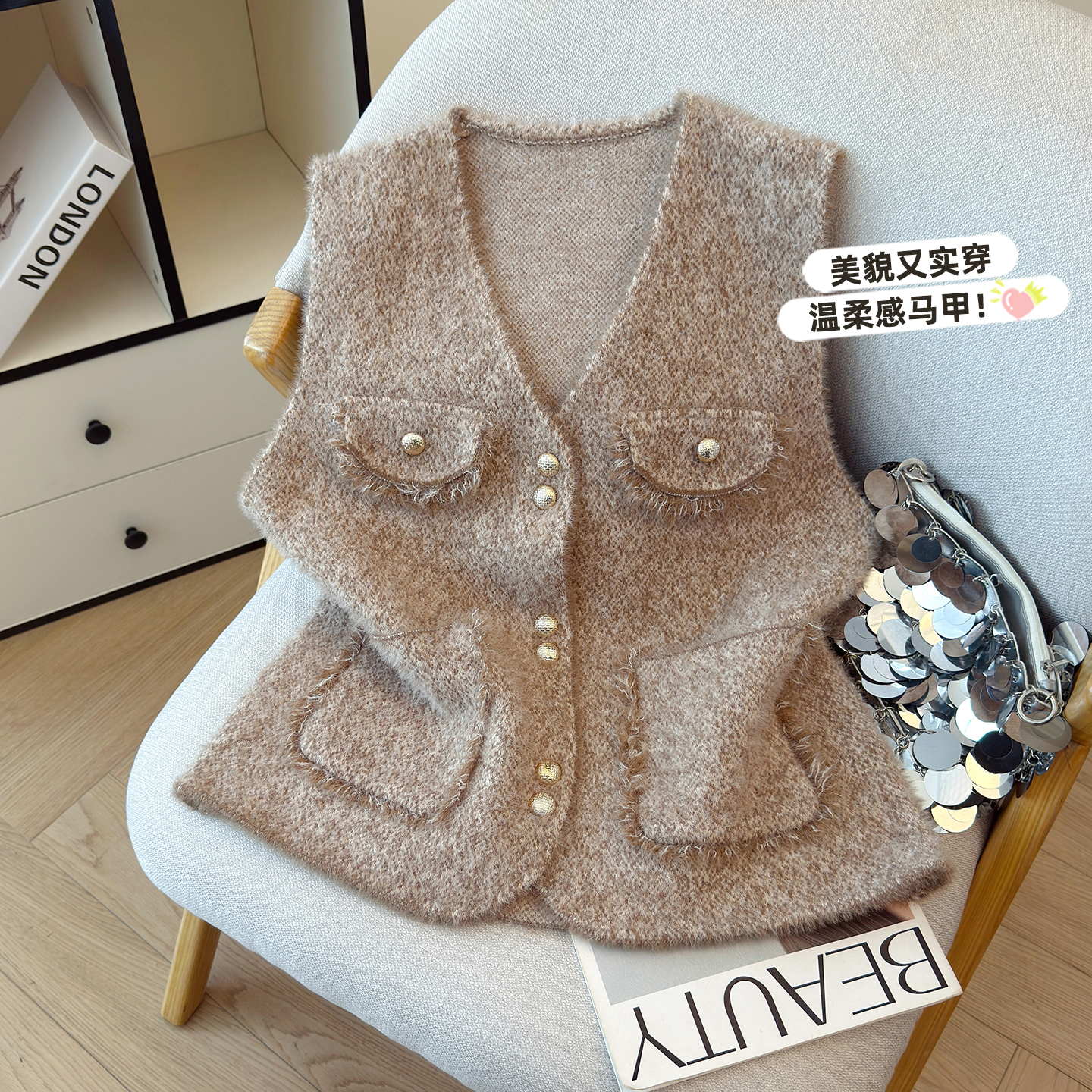 V领小香风针织马甲女春季时髦洋气高级感坎肩马夹上衣 服裝批發女裝批發服飾貨源
