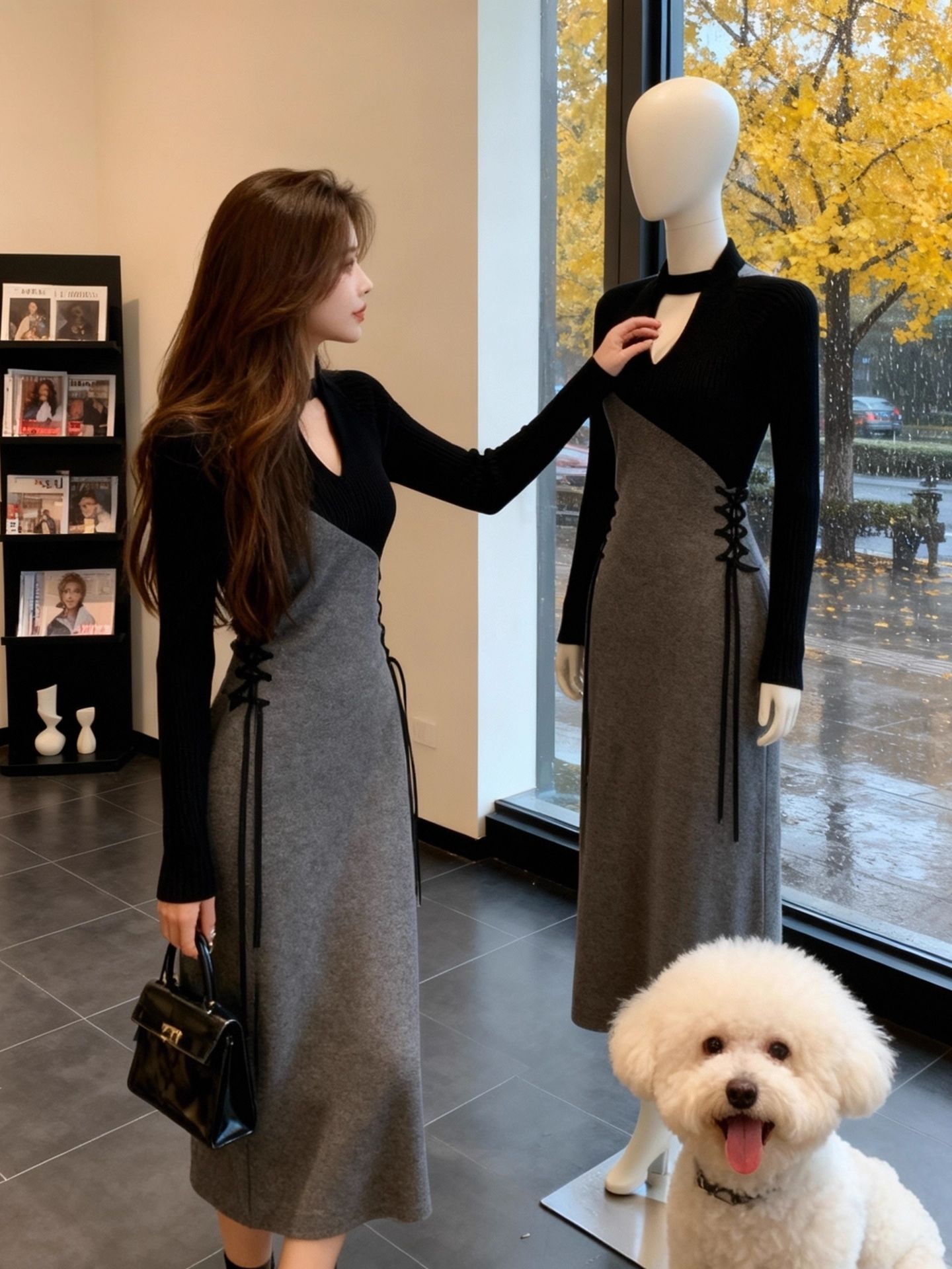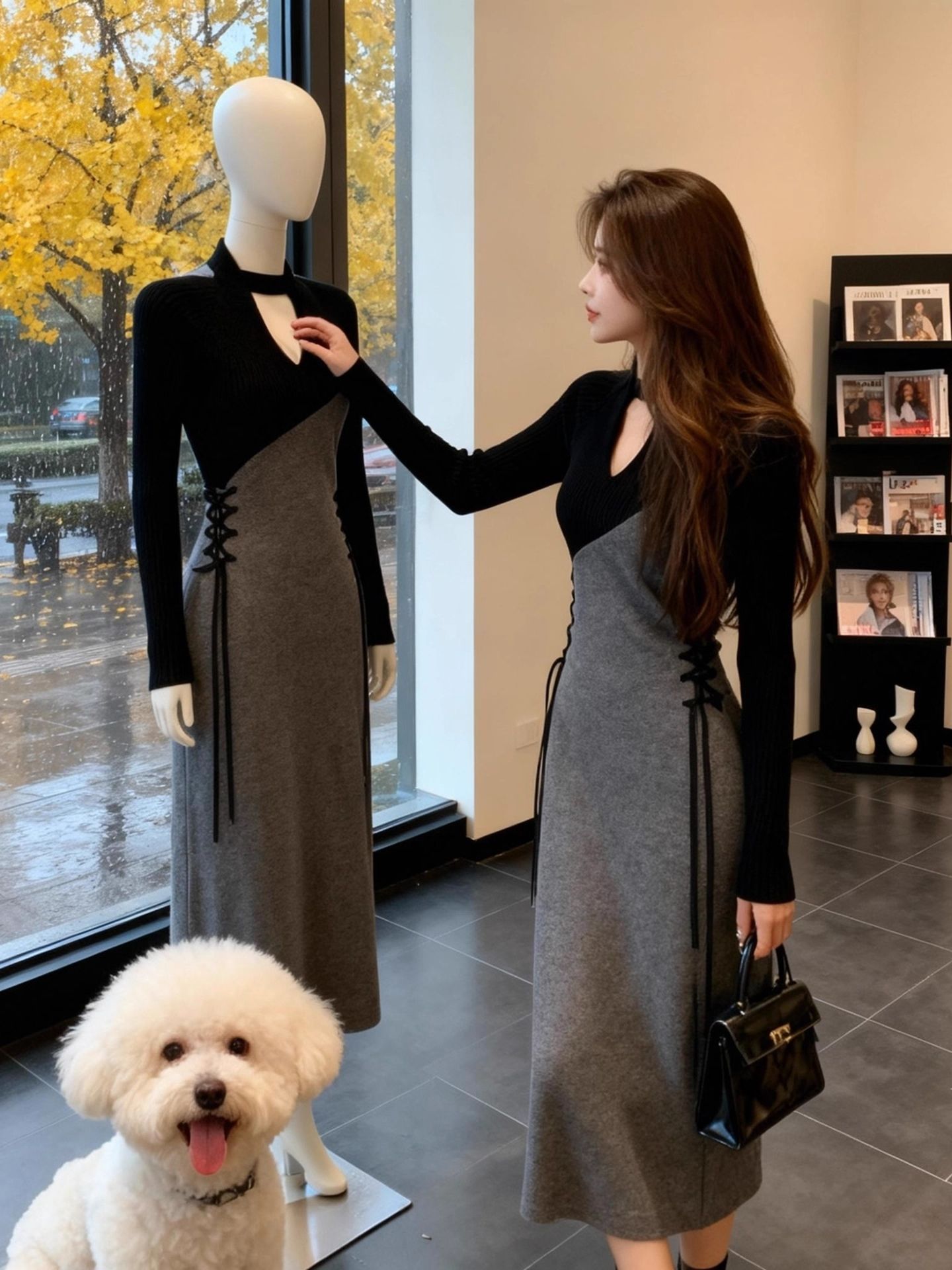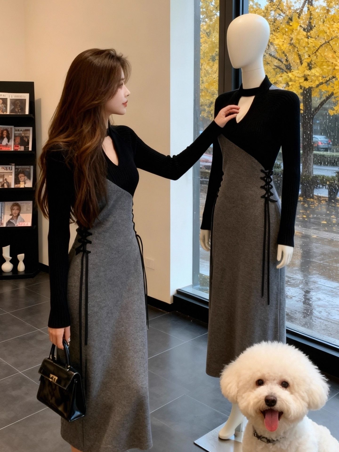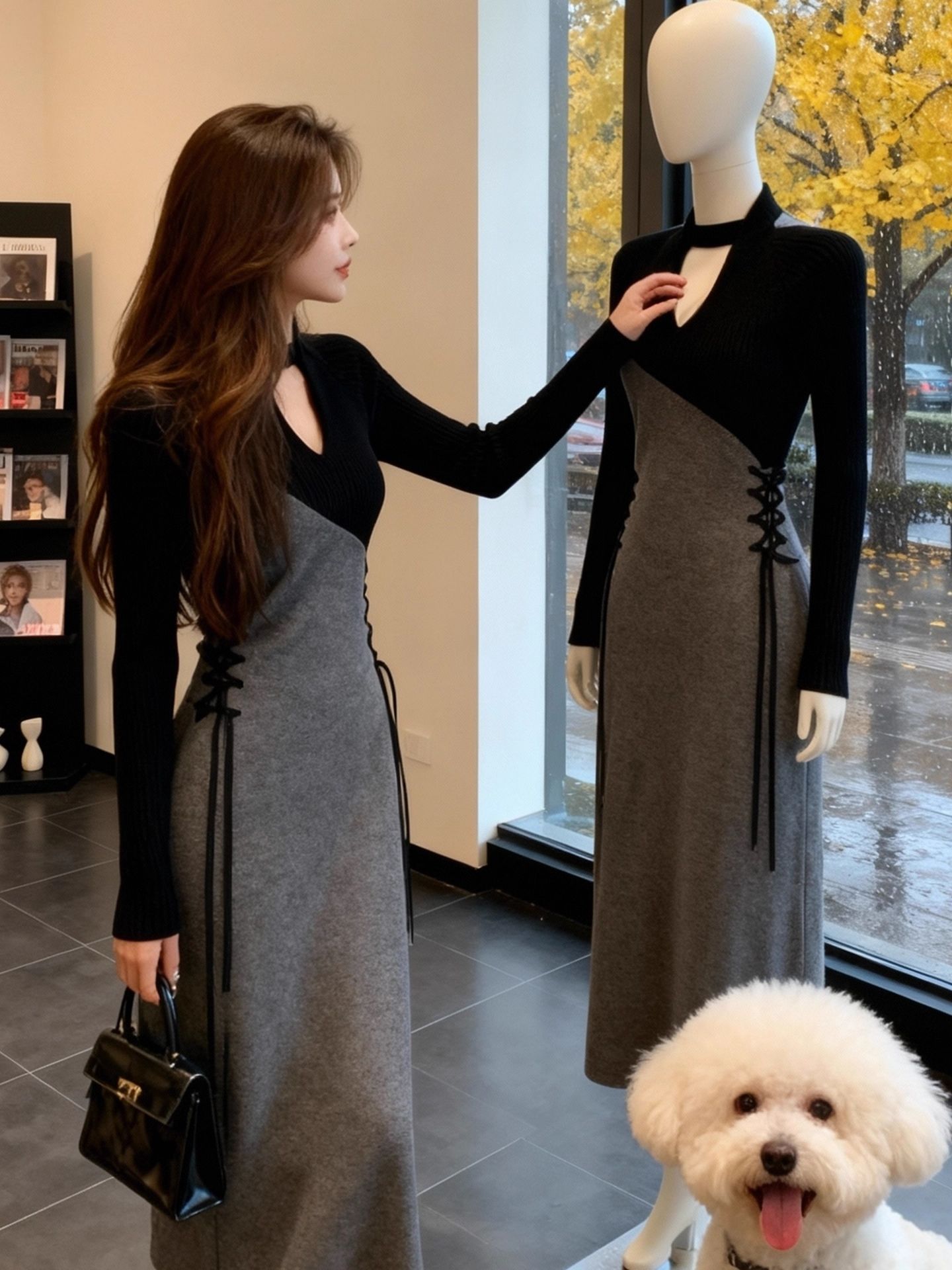Home > 夜店裙、长袖连衣裙 > 法式独特漂亮拼接连衣裙新款小众设计感气质名媛系带长裙 服裝批發女裝批發服飾貨源