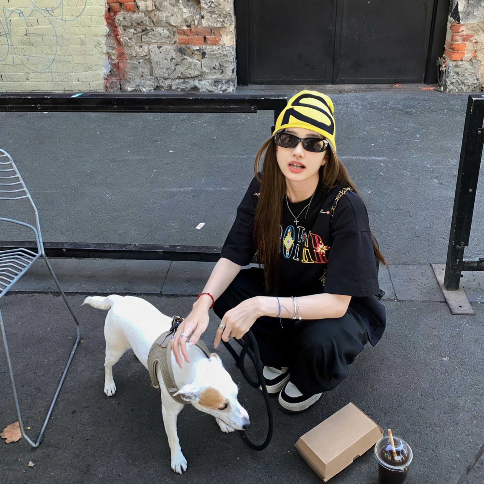 简约字母刺绣纯棉短袖T恤女夏季新款重磅百搭设计上衣 服裝批發女裝批發服飾貨源