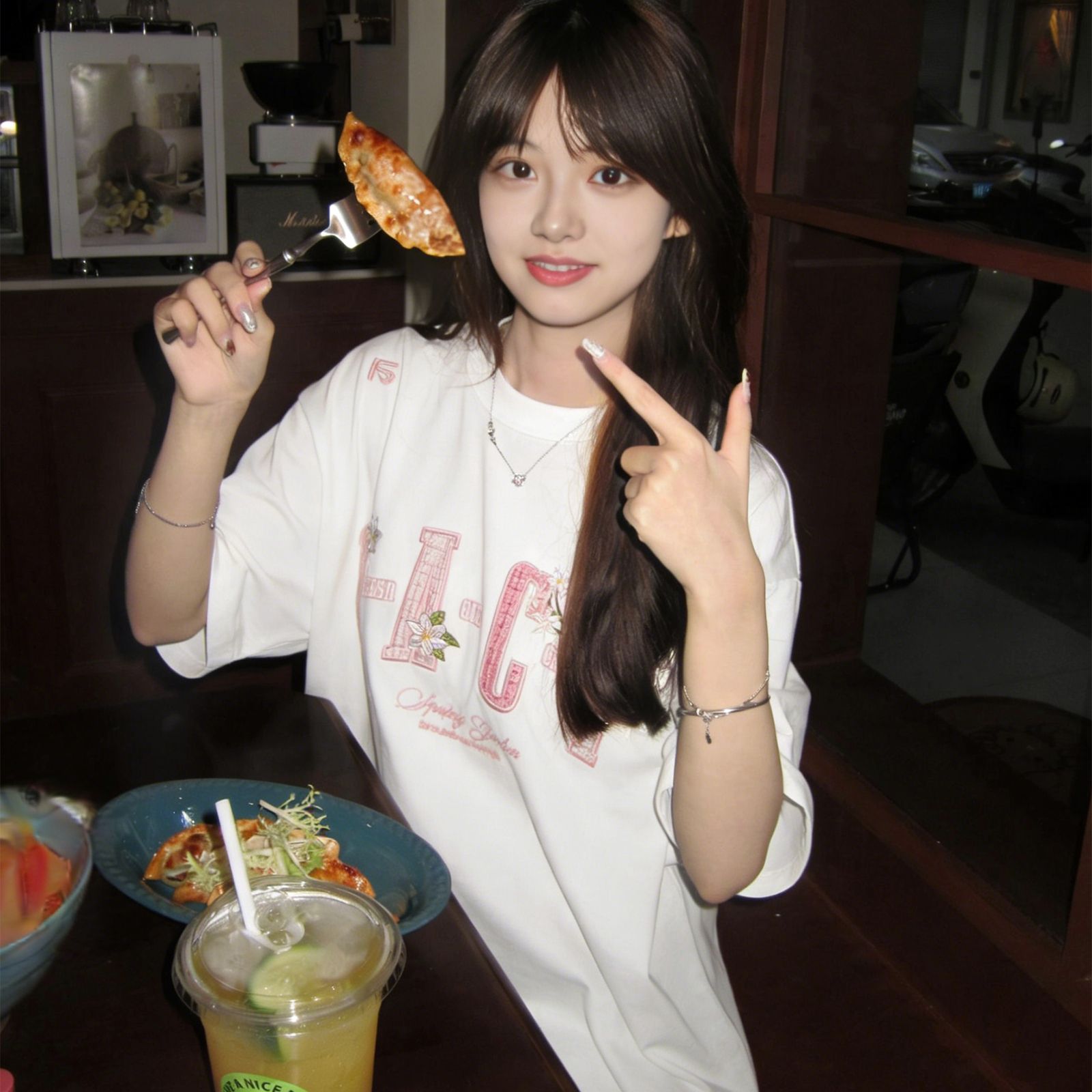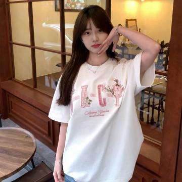 字母刺绣设计感纯棉美式小香风夏季新款小众潮牌短袖T恤女上衣 服裝批發女裝批發服飾貨源