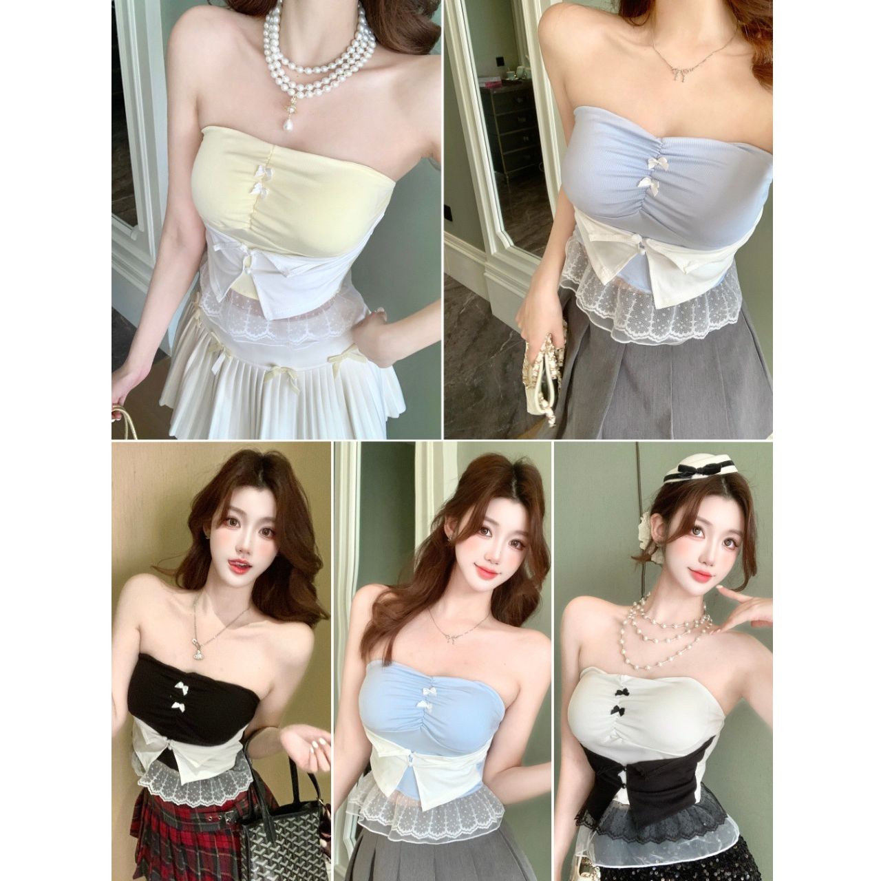 BY11267# 夏季新款甜辣风蕾丝下摆拼接抹胸修身显瘦女固定带胸垫上衣 服裝批發女裝批發服飾貨源
