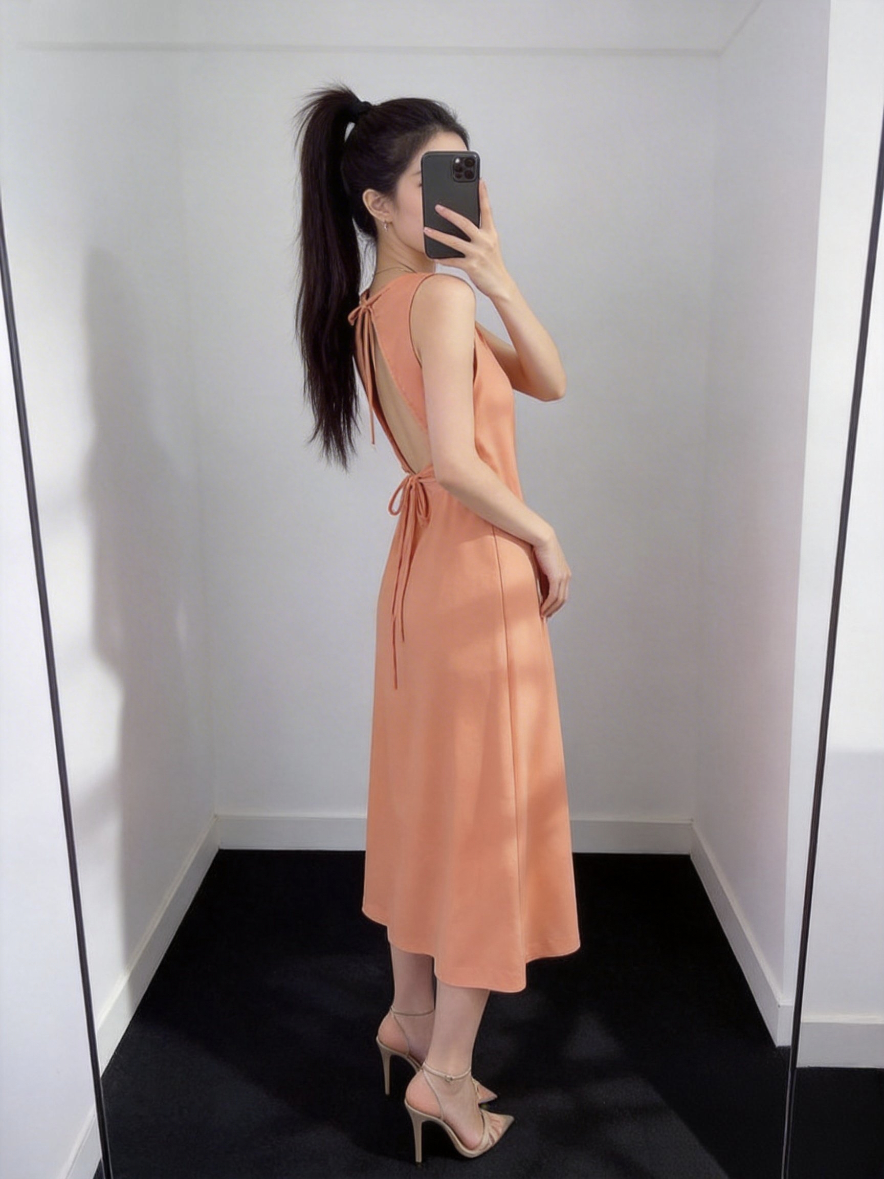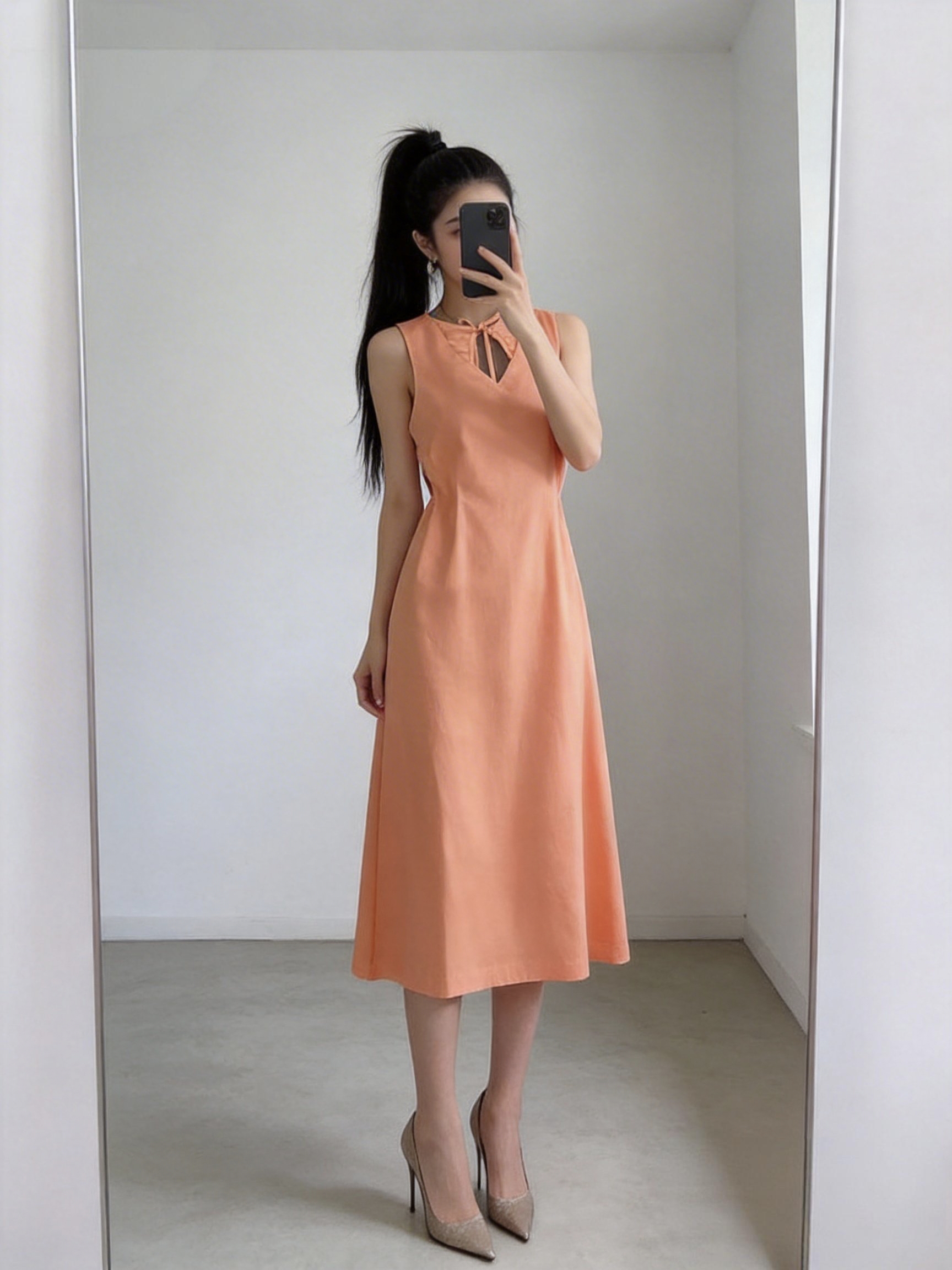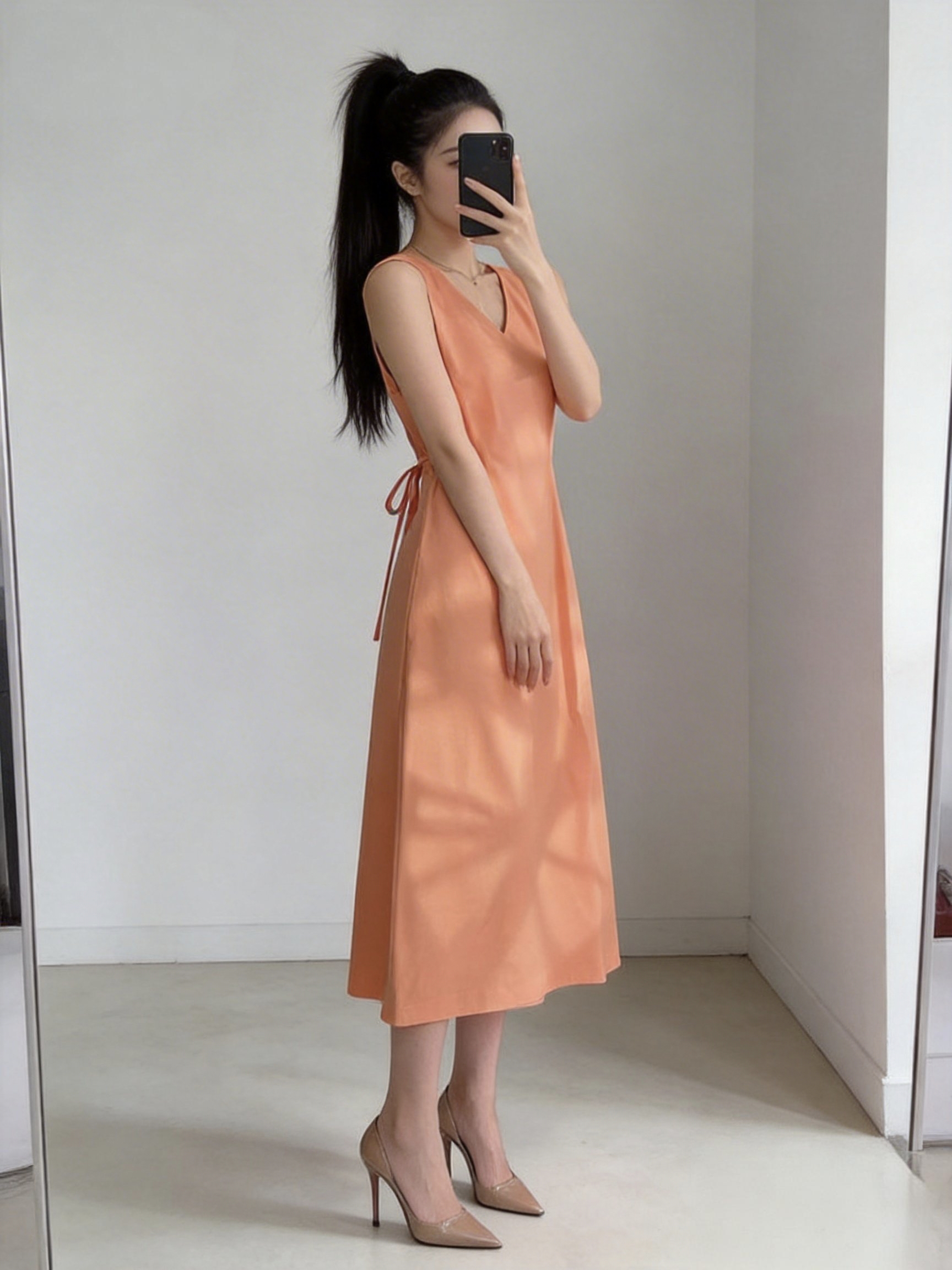 BY11679# 新款法式高端复古气质垂坠感女夏背心长裙法式橘色无袖连衣裙 服裝批發女裝批發服飾貨源