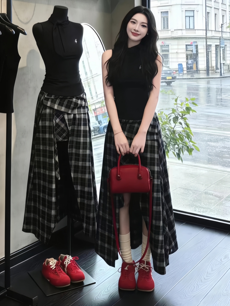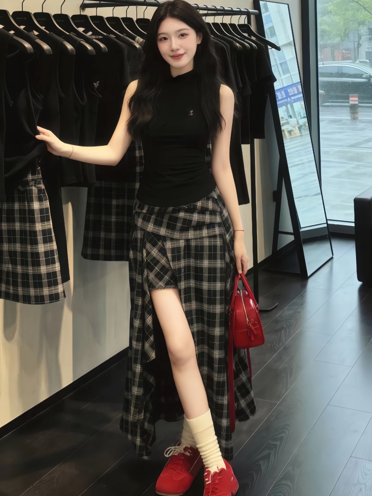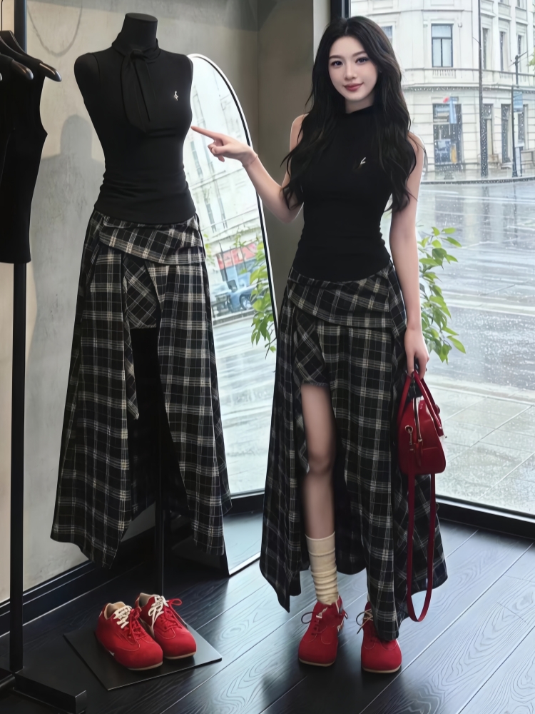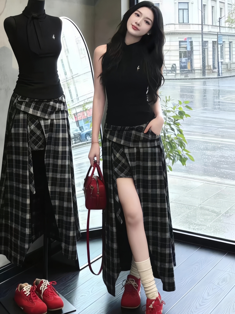 BY11732# 韩系一整套ootd穿搭气质巨好看复古黑色刺绣上衣开叉半裙两件套装 服裝批發女裝批發服飾貨源