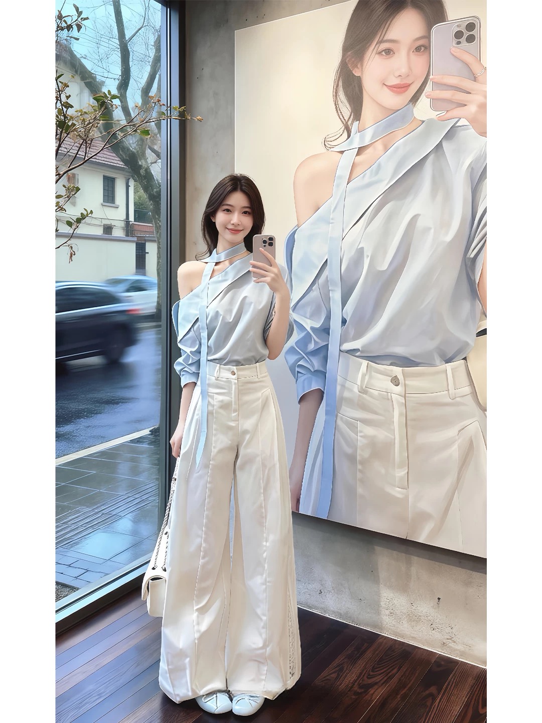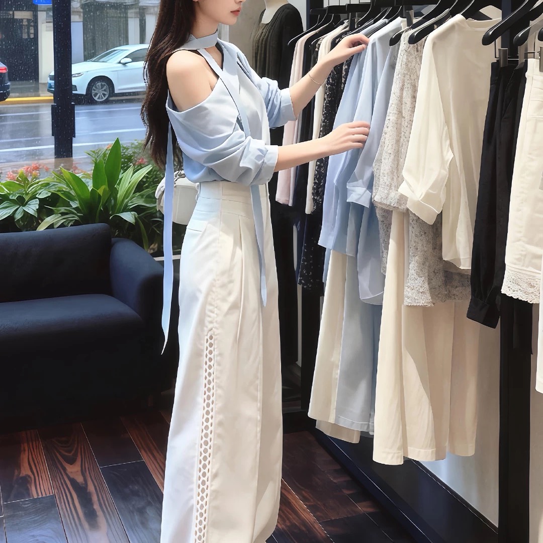 BY11748# 气质一整套ootd穿搭法式慵懒风紫色长袖衬衫阔腿裤两件套装春 服裝批發女裝批發服飾貨源