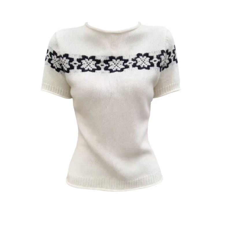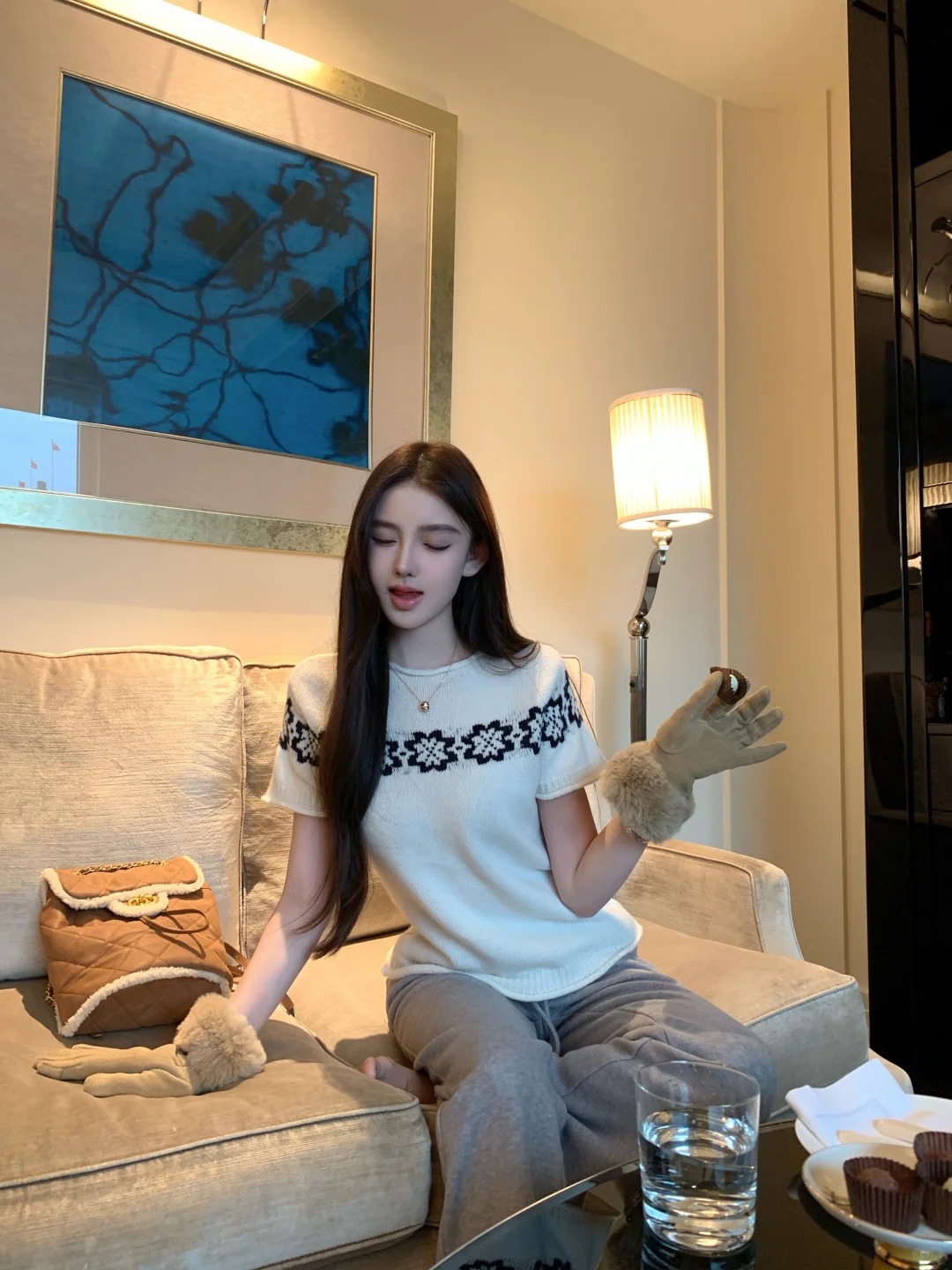 BY11843# 费尔岛毛衣慵懒高级感女早春季新款修身套头针织衫短袖通勤风上衣 服裝批發女裝批發服飾貨源