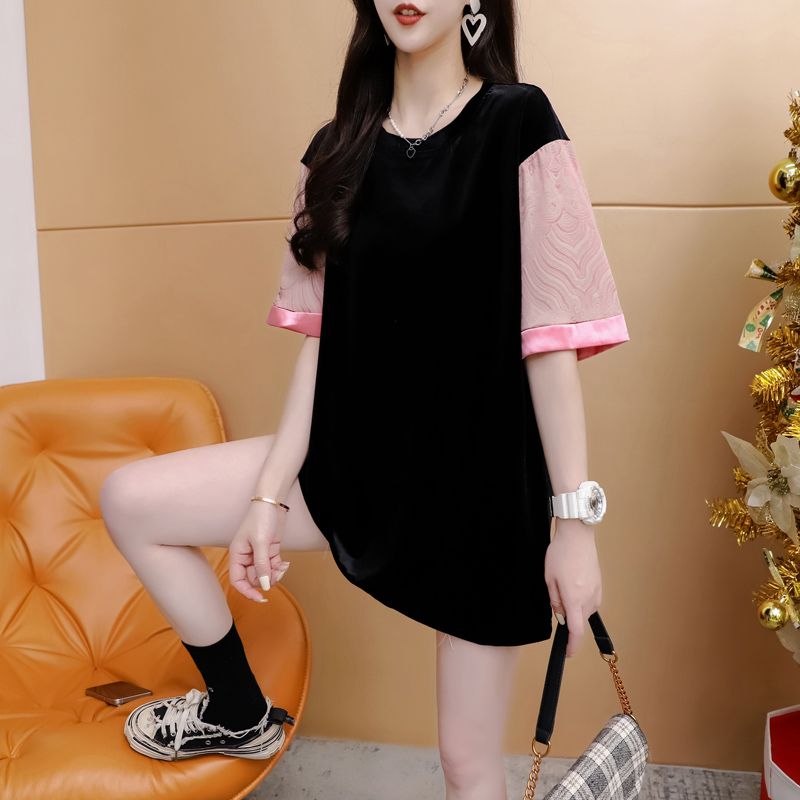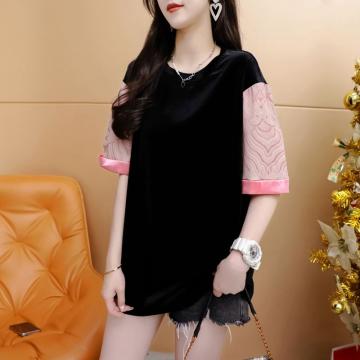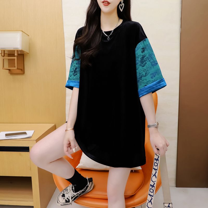 Home > 短袖T恤 > BY11862# 夏季原版质量大码新中式拼色提花短袖T恤女 服裝批發女裝批發服飾貨源