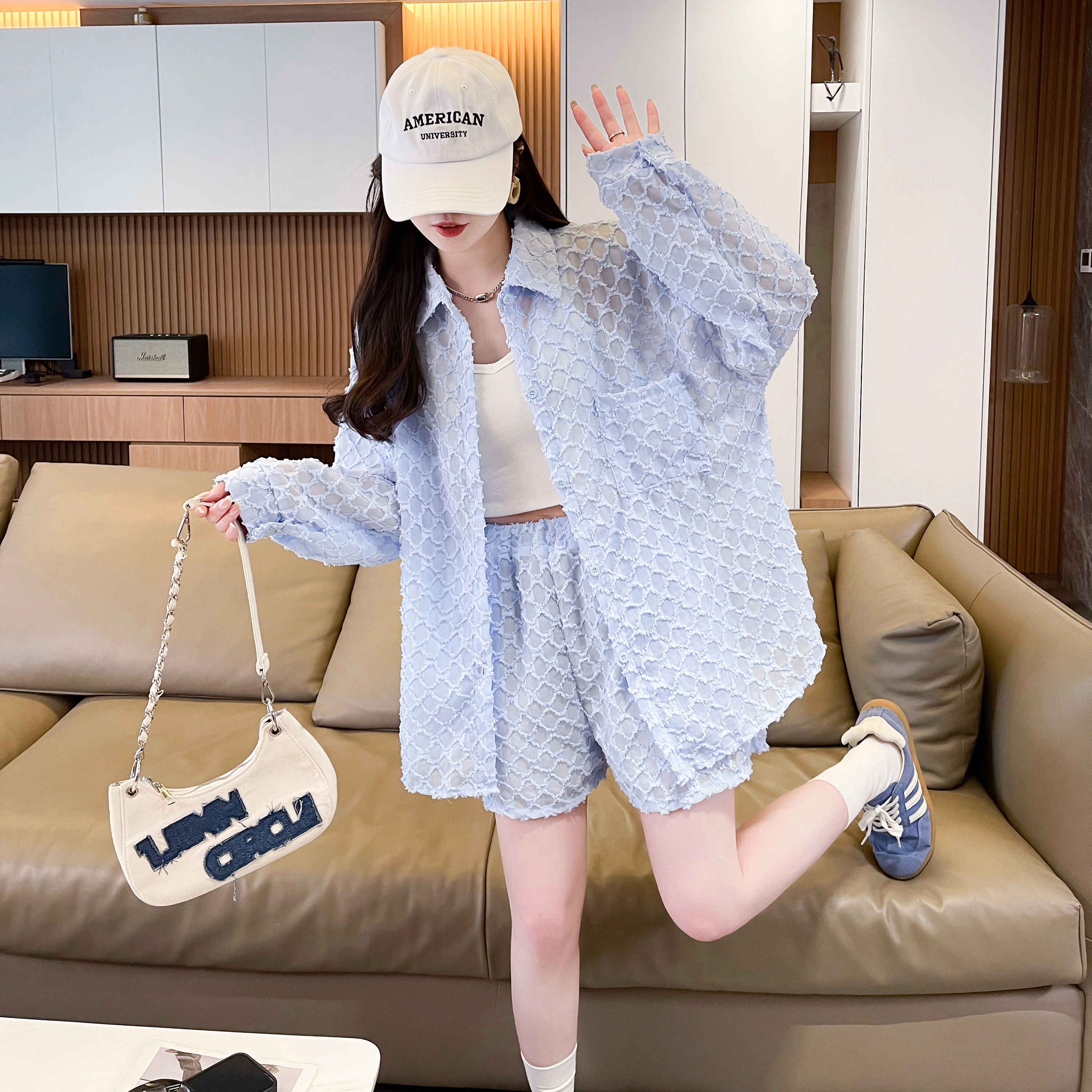 BY11952# 夏季时尚长袖防晒衬衫+短裤两件套装 服裝批發女裝批發服飾貨源